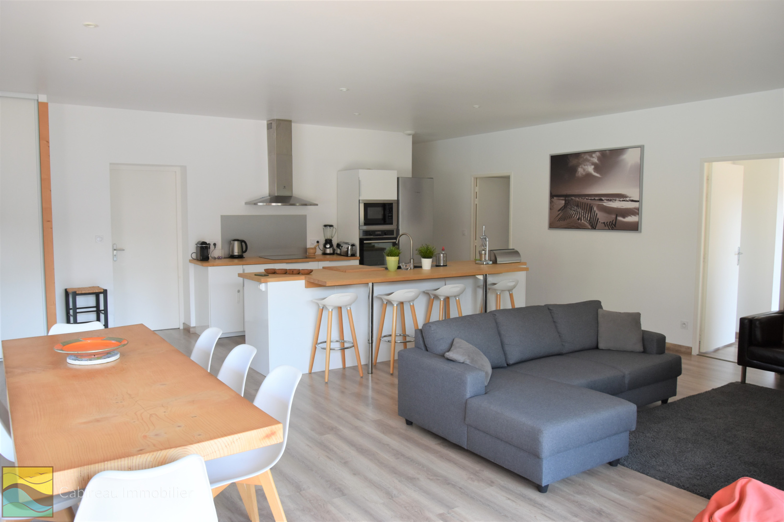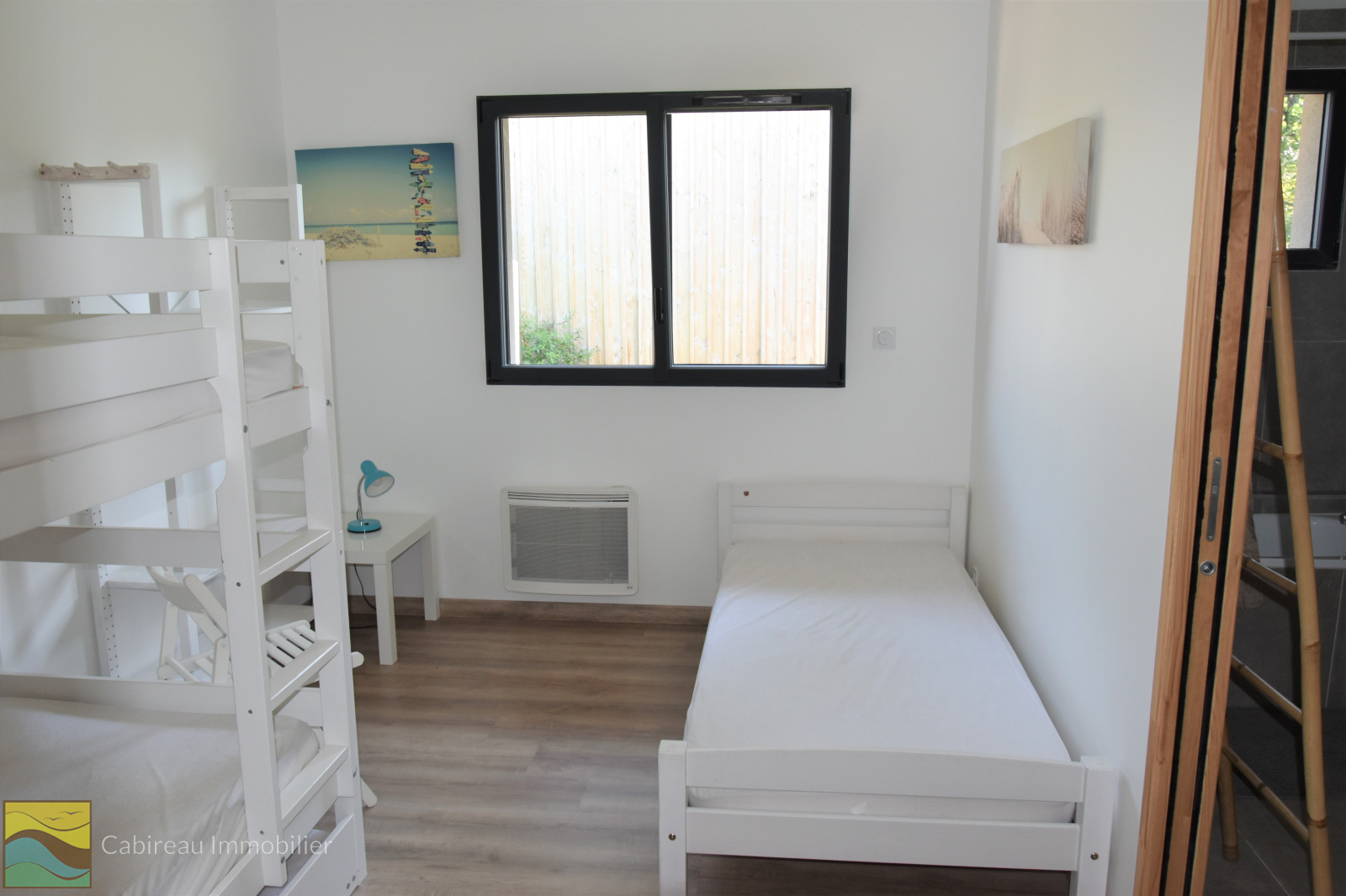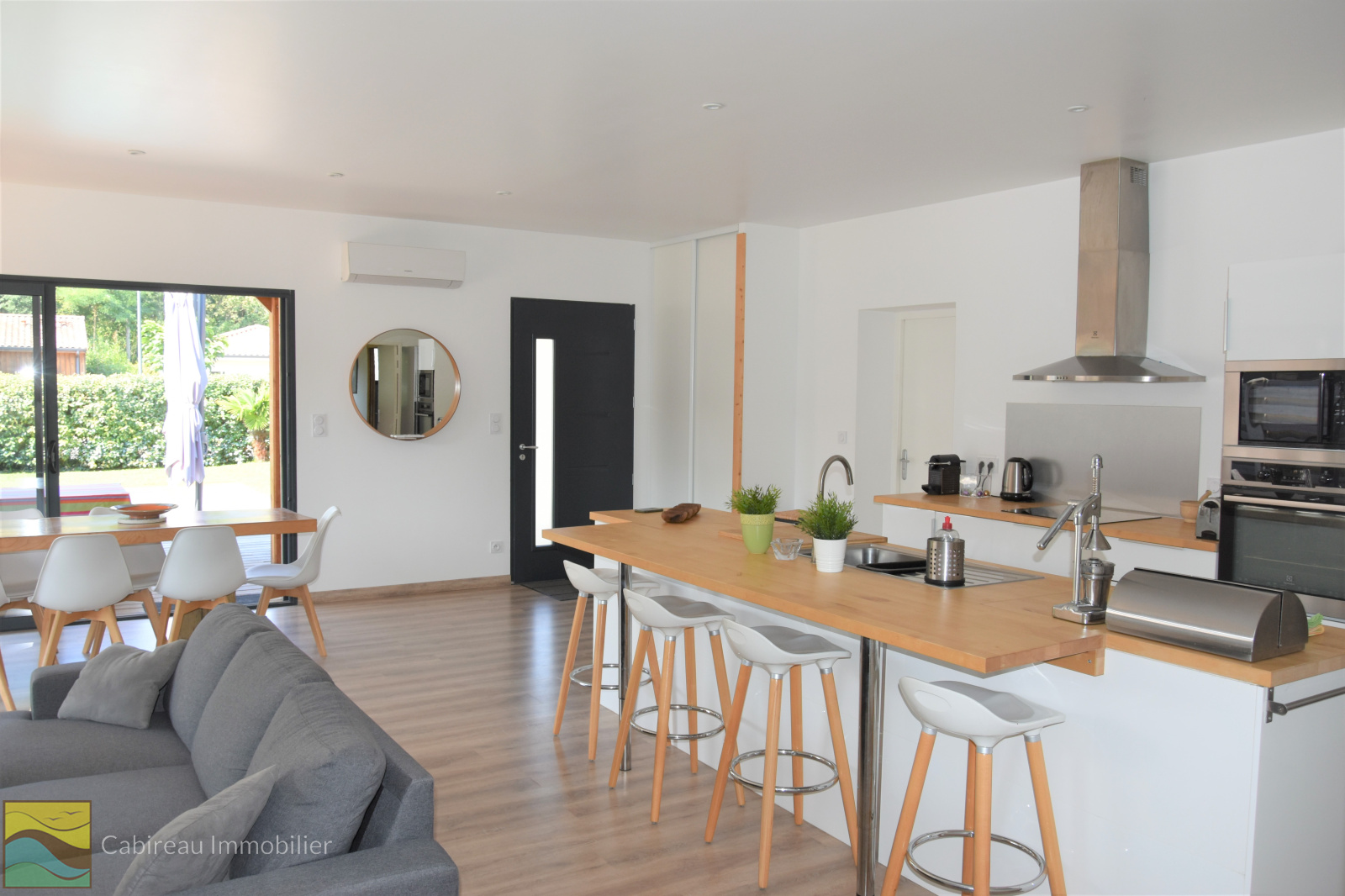 Lacanau (33680)COUP DE COEUR pour cette belle contemporaine construite en 2017 (en brique bardage en douglas) aux normes de la RT 2012 au calme, à deux pas du lac, proche centre-ville. La maison est de plain-pied, fonctionnelle, lumineuse pour une surface de 100 m² implantée sur une parcelle de terrain de 601 m² agrémentée d'une piscine chauffée et 2 terrasses en bois. Le bien se compose d'un spacieux séjour cuisine us avec clim reversible, suite parentale avec sa salle d'eau privative, 2 chambres, salle de bains, cellier et un WC séparé. Garagae attenant de 24 m².
