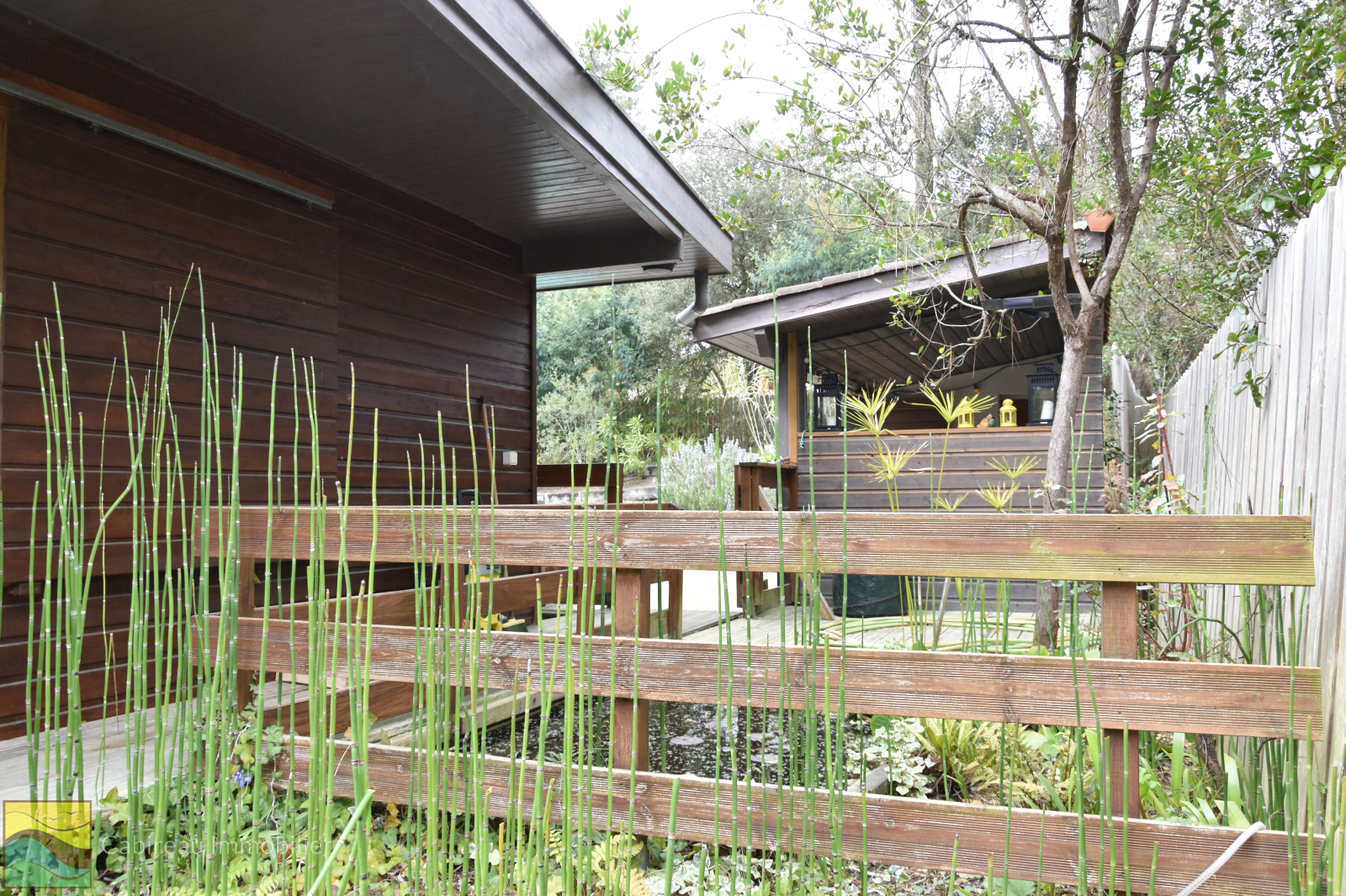 2 dépendances ( 13.66 m² et 12 m²) dont une sur pilotis avec un clin d'œil.