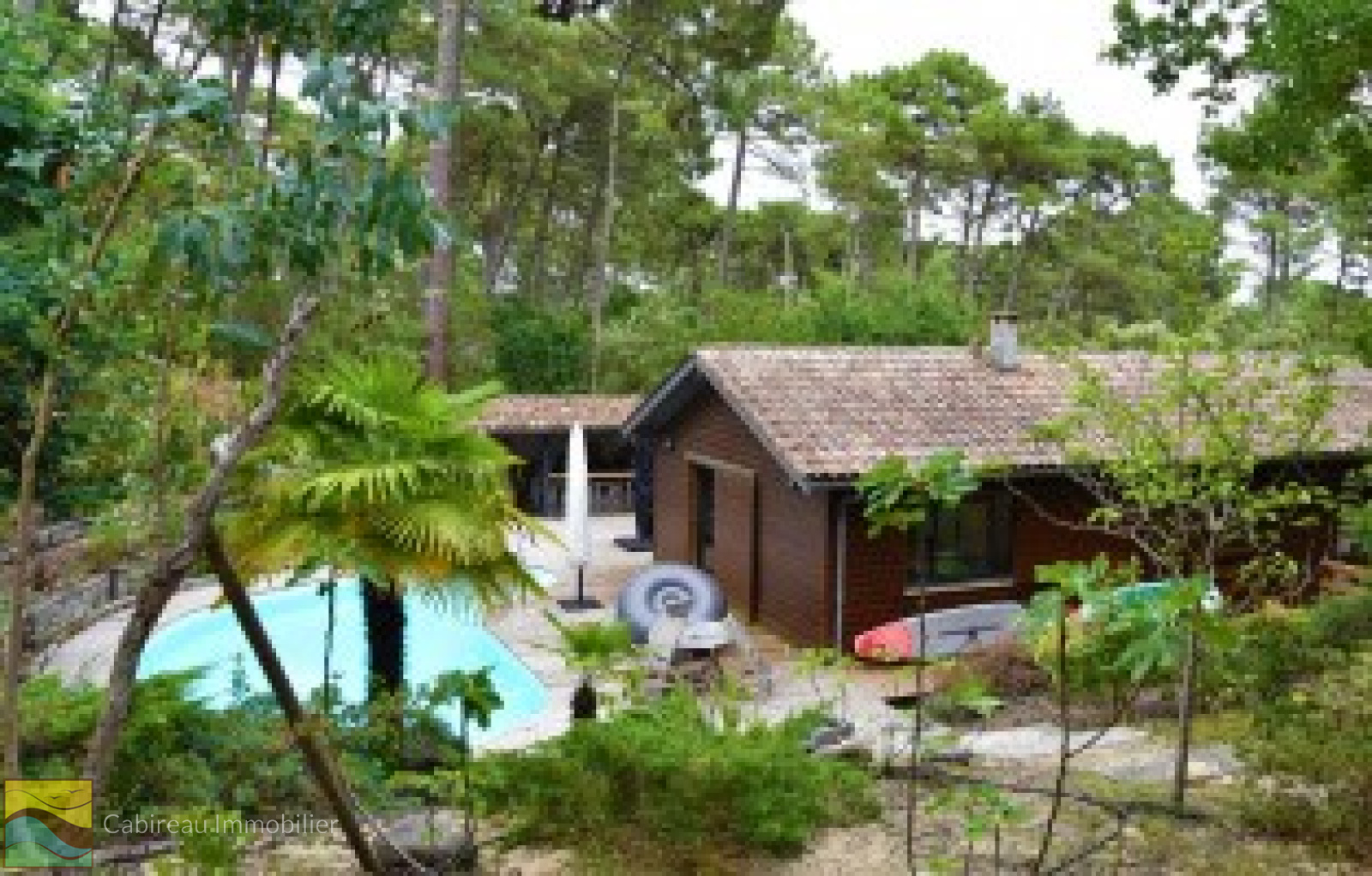 Lacanau (33680)Venez découvrir cette charmante villa atypique et évolutive d'environ 100 m² habitable + 2 annexes habitables, située à 2 pas du lac elle offre un cadre de vie "zen" dans un écrin de verdure à l'abri des regards sur un terrain de 1362 m² agrémenté d'une piscine et d'un pool house (ambiance très conviviale)