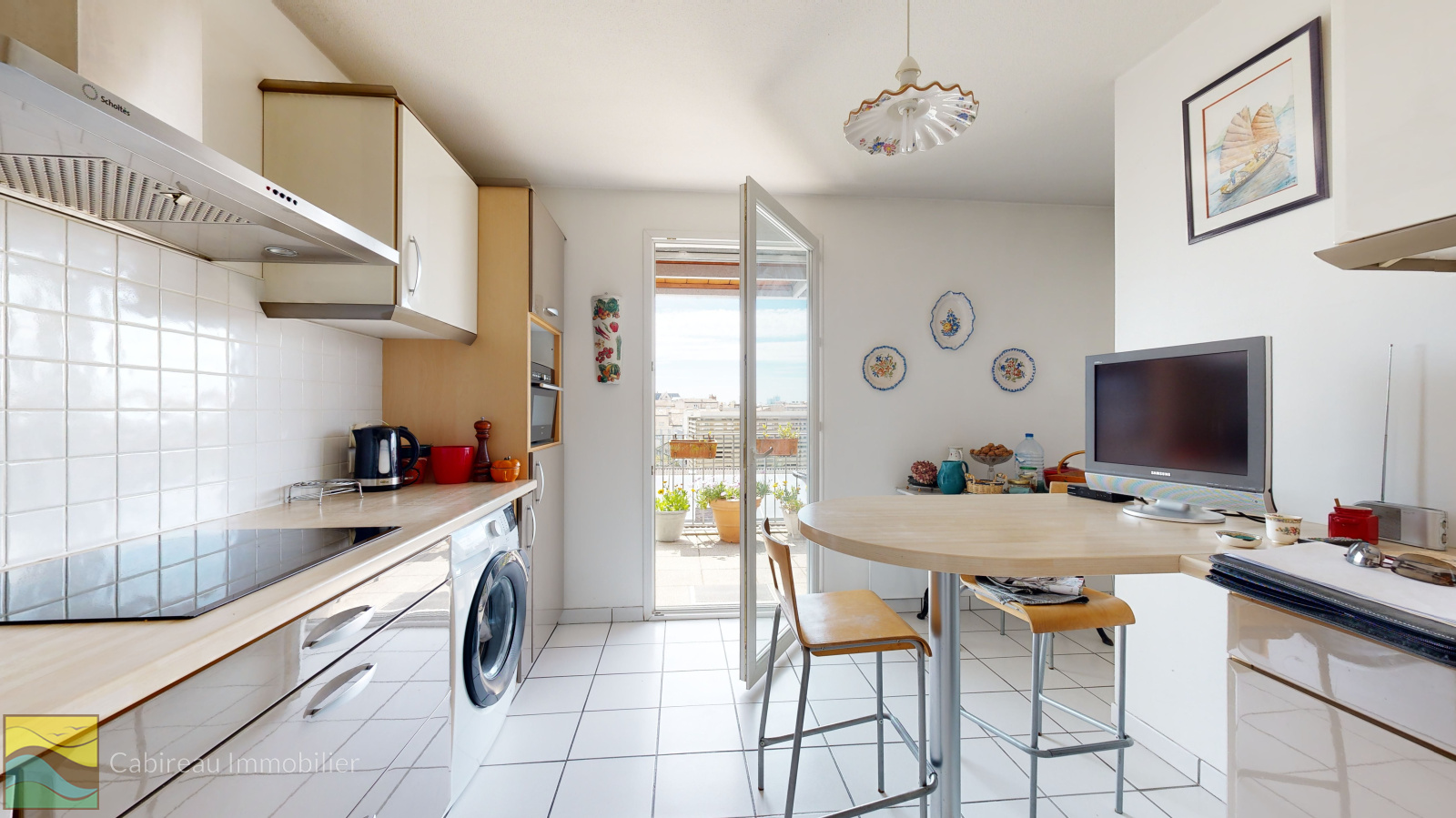 Ce spacieux duplex, baigné de lumière, offre une surface habitable de 126 m² (117 m² loi Carrez). Il se compose d'une entrée, d'une cuisine séparée donnant sur une terrasse exposée plein sud ainsi qu'un séjour traversant, lumineux, ouvrant sur une première terrasse de 20 m² environ, également orientée sud. Une seconde terrasse, exposée au nord d'environ 10 m², un WC avec lave-mains, un cellier et un dressing complètent ce niveau.