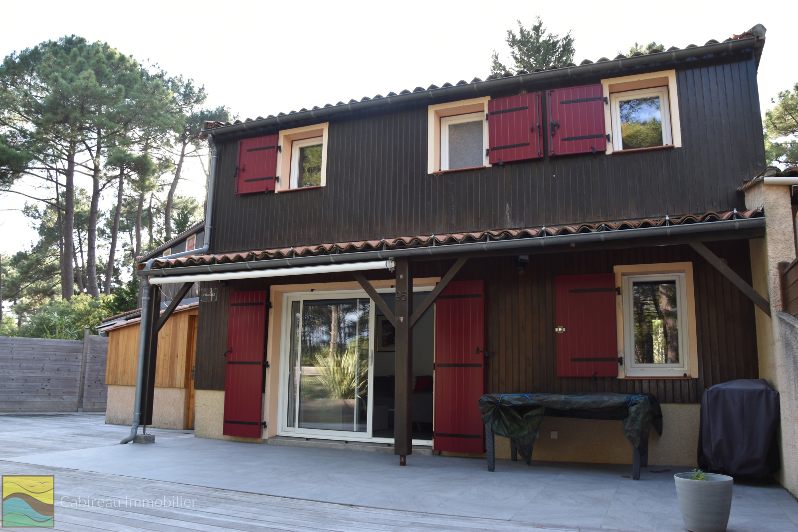 Lacanau ocean (33680)Coup de coeur pour ce beau pavillon à étage type 3, refait à neuf et aménagé avec harmonie et goût. Situé dans une résidence calme avec piscine collective et accès direct aux pistes cyclables, il offre un lumineux séjour-cuisine US équipée ouvrant par baie vitrée sur une vaste terrasse d'environ 100 m² en bois (IPE) clôturée et sans vis-à-vis, à l'étage 2 chambres dont une avec placard, salle d'eau, Wc indépendant, cellier attenant de 7 m² et parking privé.