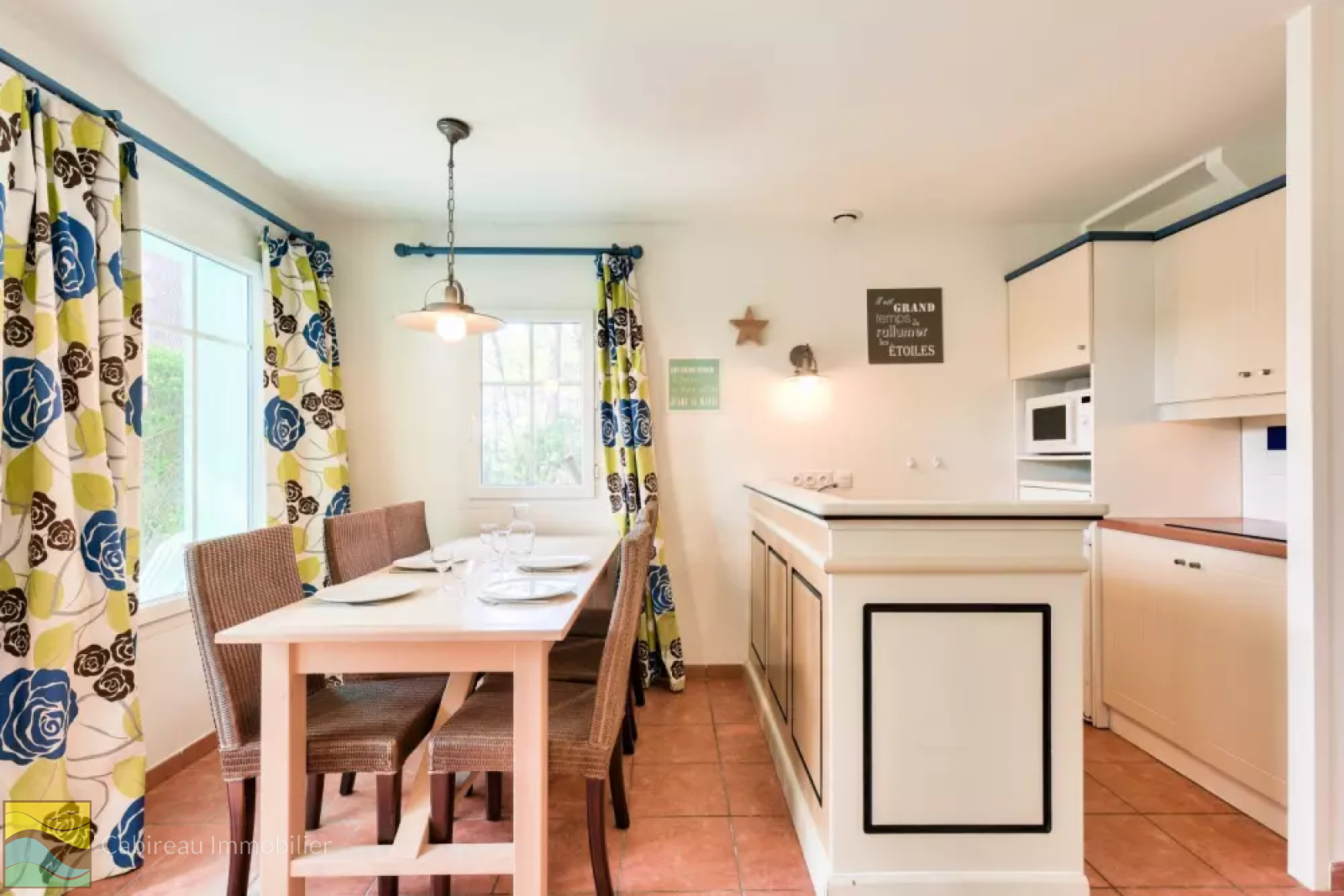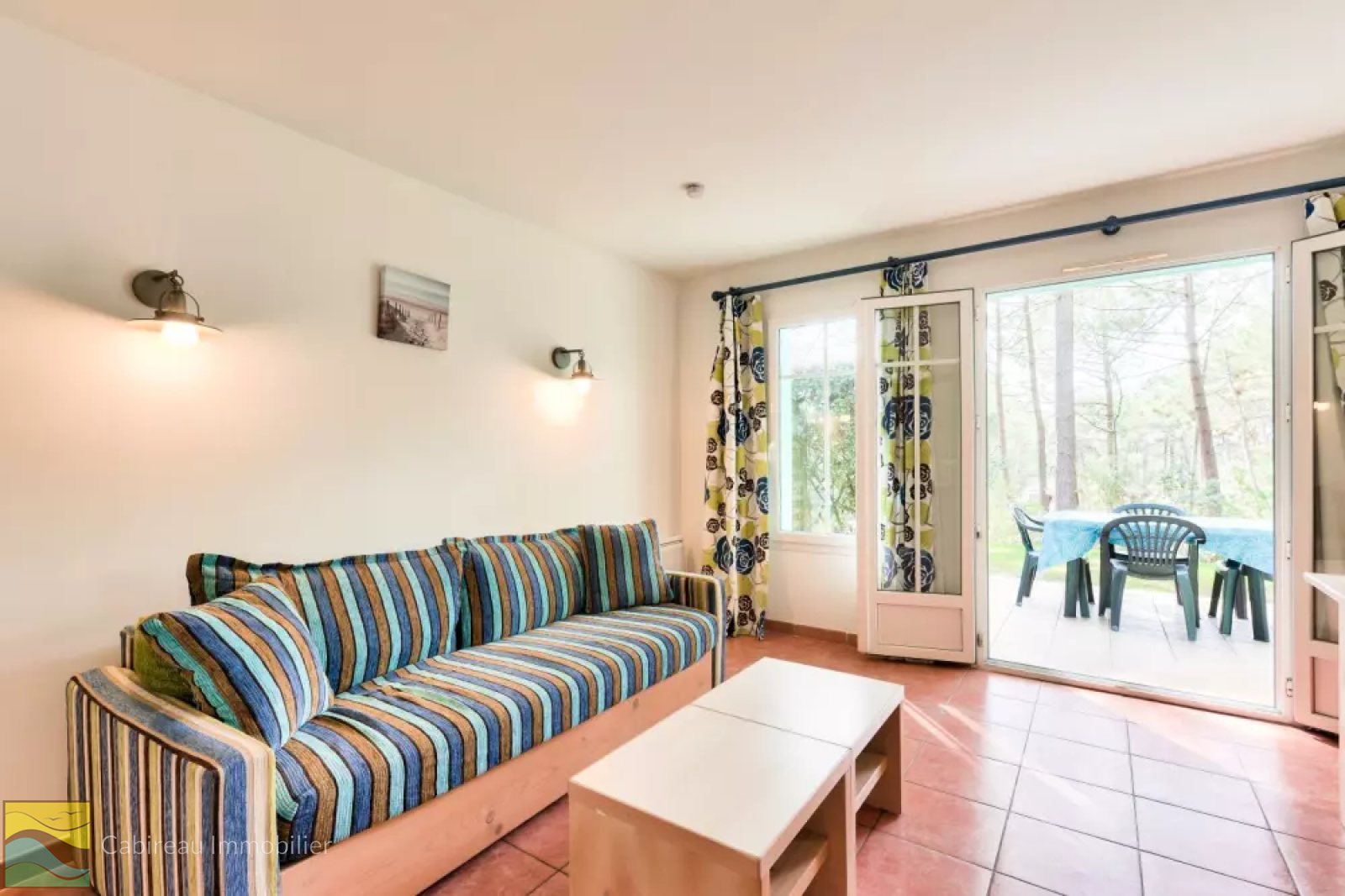 Lacanau ocean (33680)En lisière du Golf sur un site verdoyant avec piscine collective, maison à étage de type 4 pour une surface de 52 m². Elle se compose d'un séjour-cuisine équipée ouvrant sur une terrasse avec vue dégagée, 2 chambres, chambre cabine, salle d'eau-wc, salle de bains et un WC séparé. Vendue meublée et équipée.