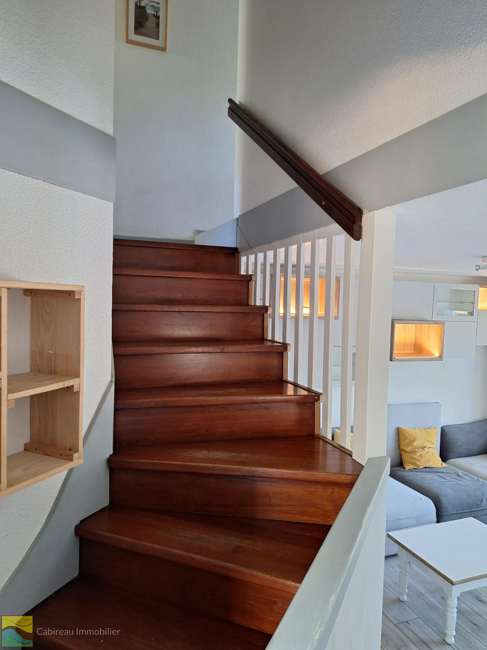 Au rez-de-chaussée, vous trouverez une entrée, séjour ouvrant par une baie vitrée sur une terrasse semi-couverte, une cuisine américaine équipée avec coin repas, une chambre avec placard, ainsi qu’une salle d’eau avec WC.