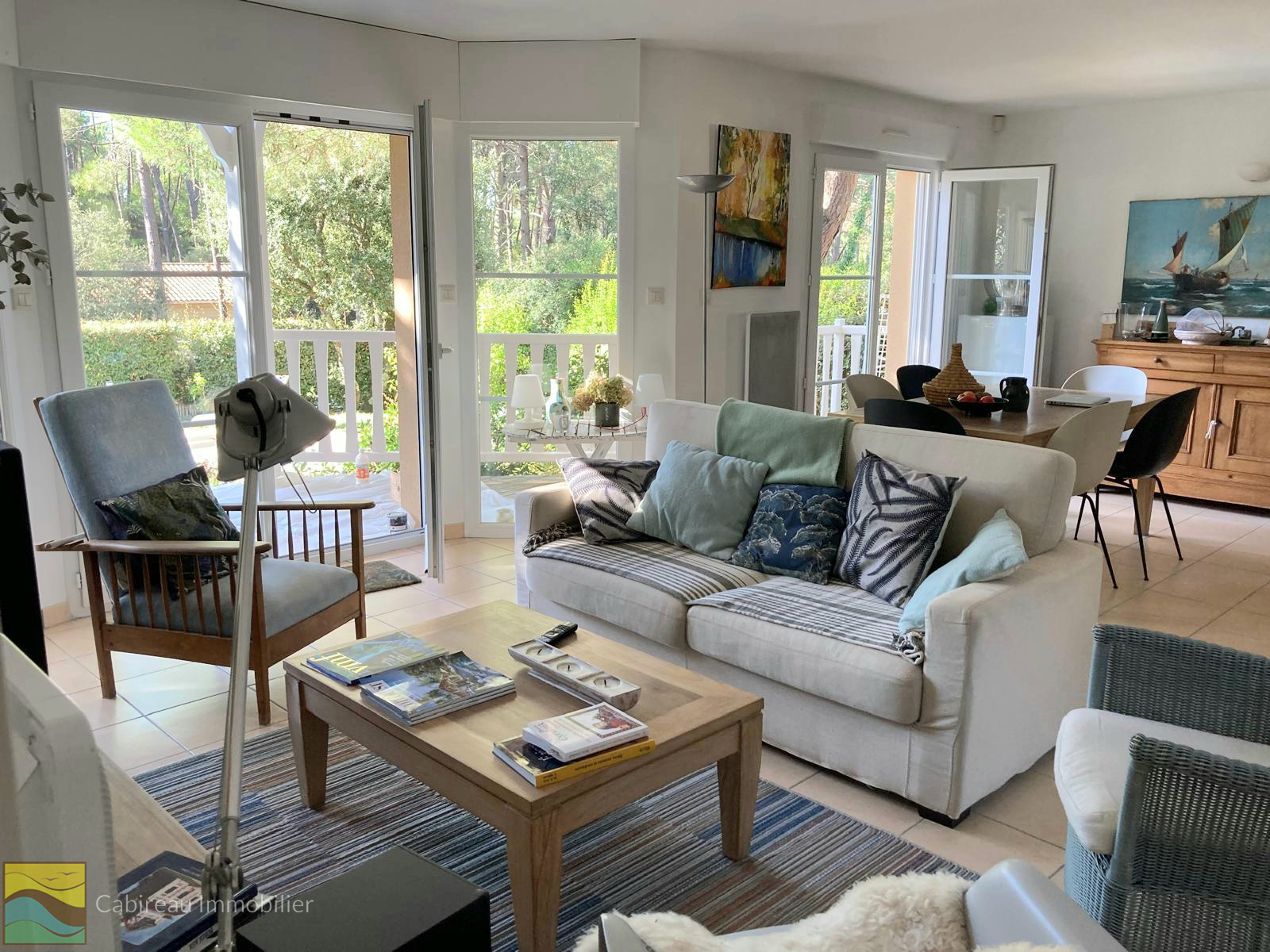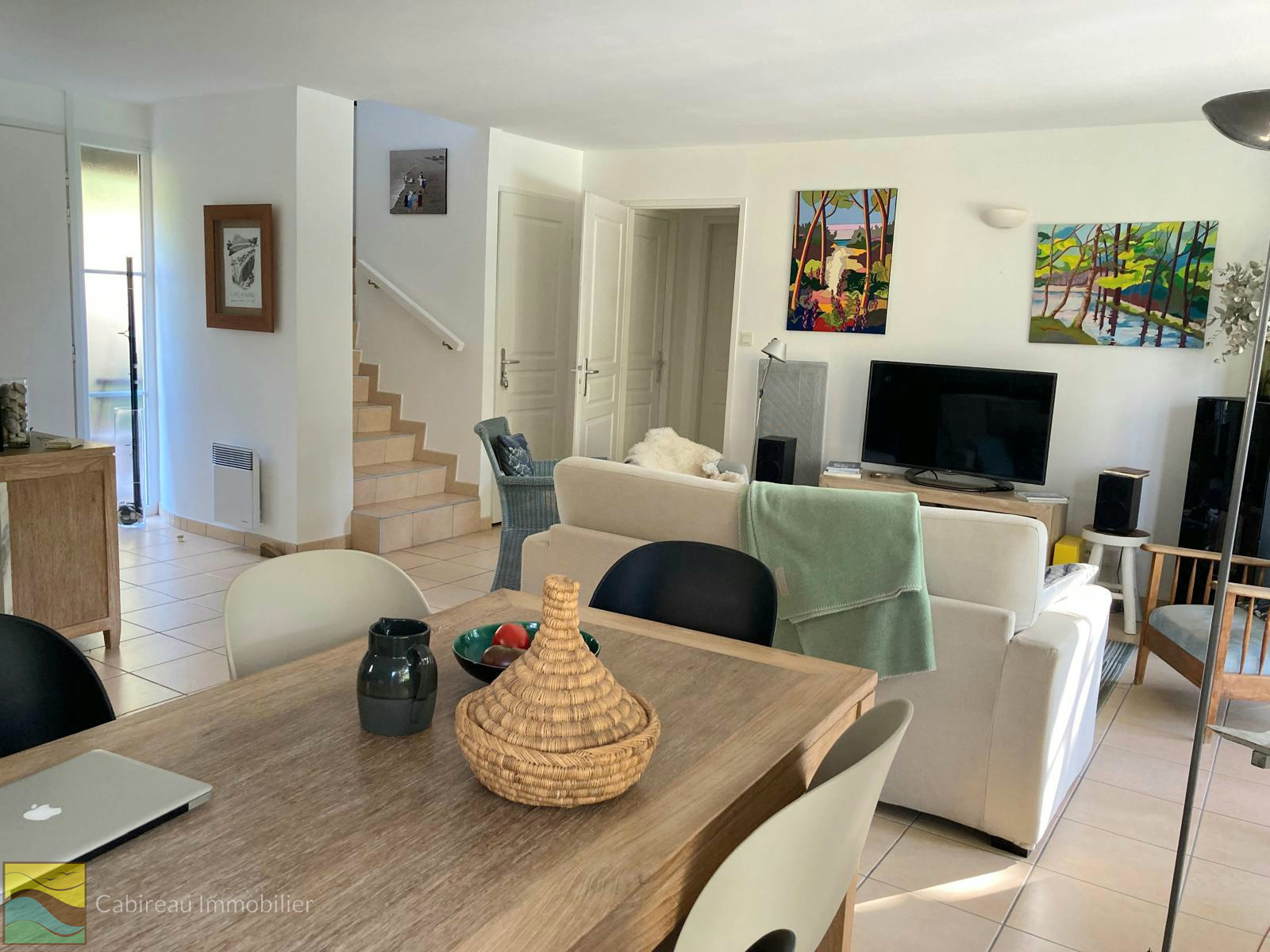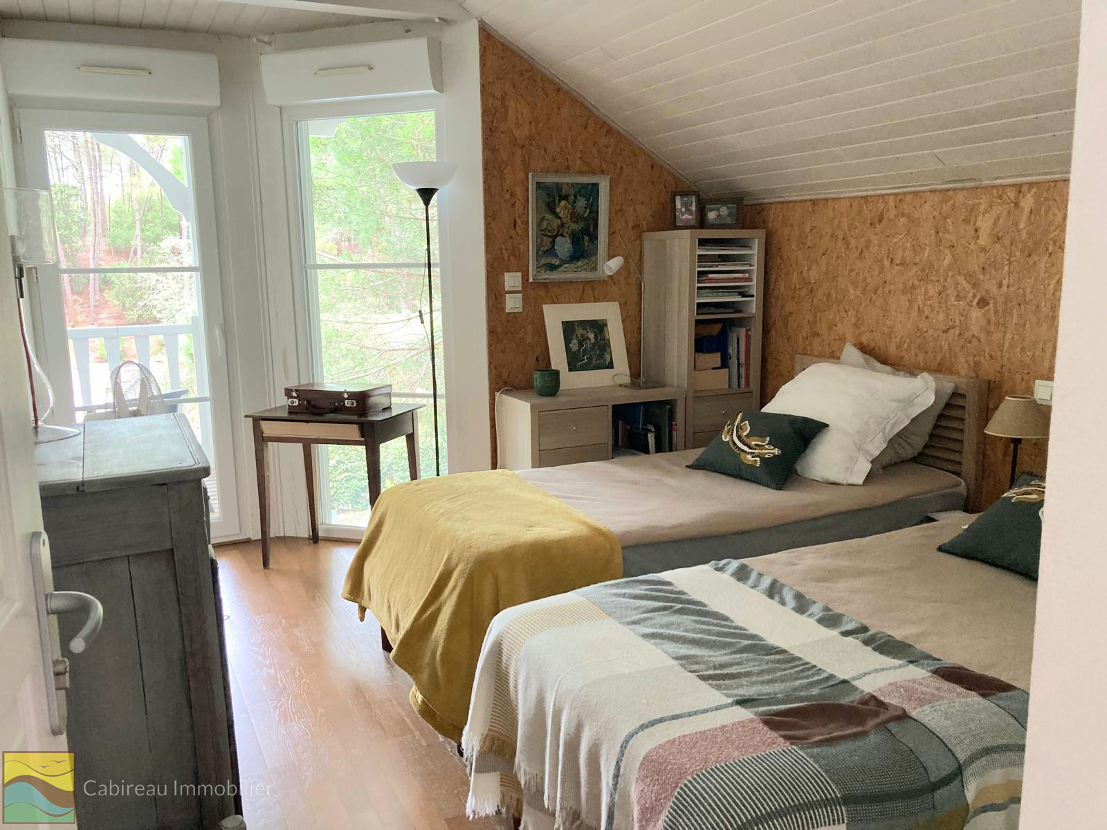 Lacanau ocean (33680)Dans un environnement naturel et calme, maison à étage agréable et fonctionnelle construite en 2006, d’une surface habitable de 97 m² sur un terrain arboré de 536 m² avec piscine de 8x4.