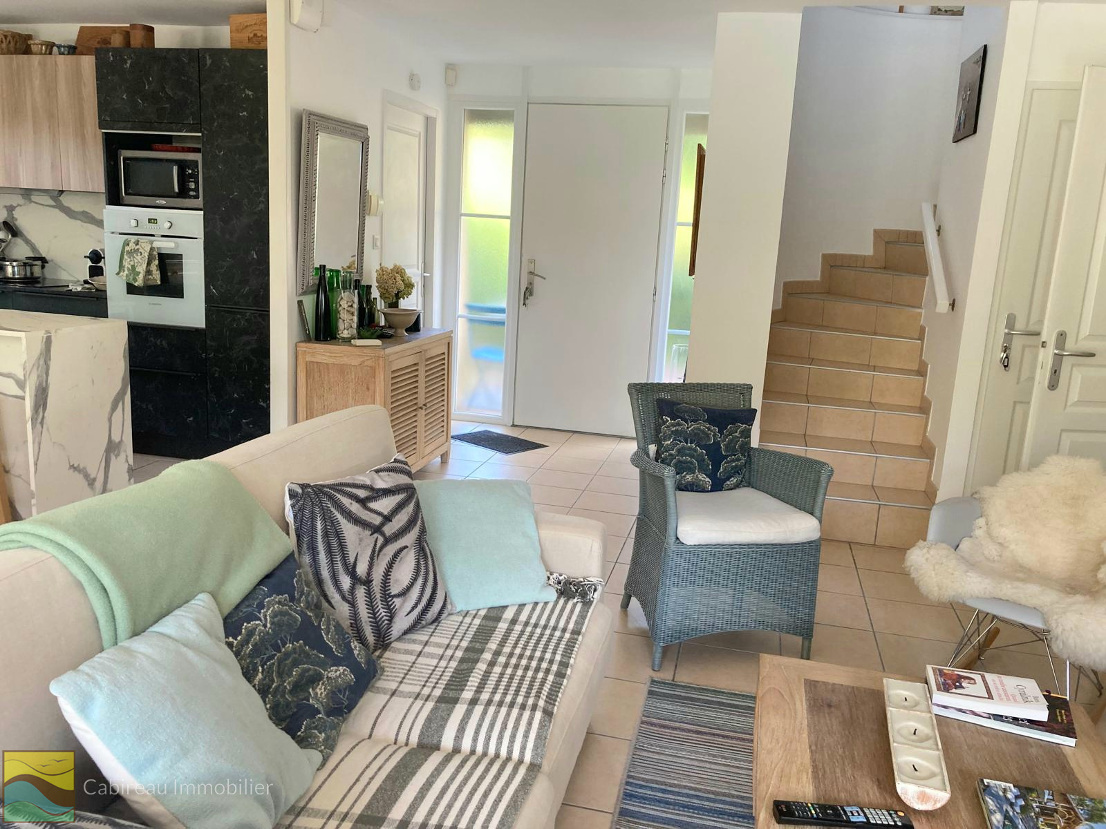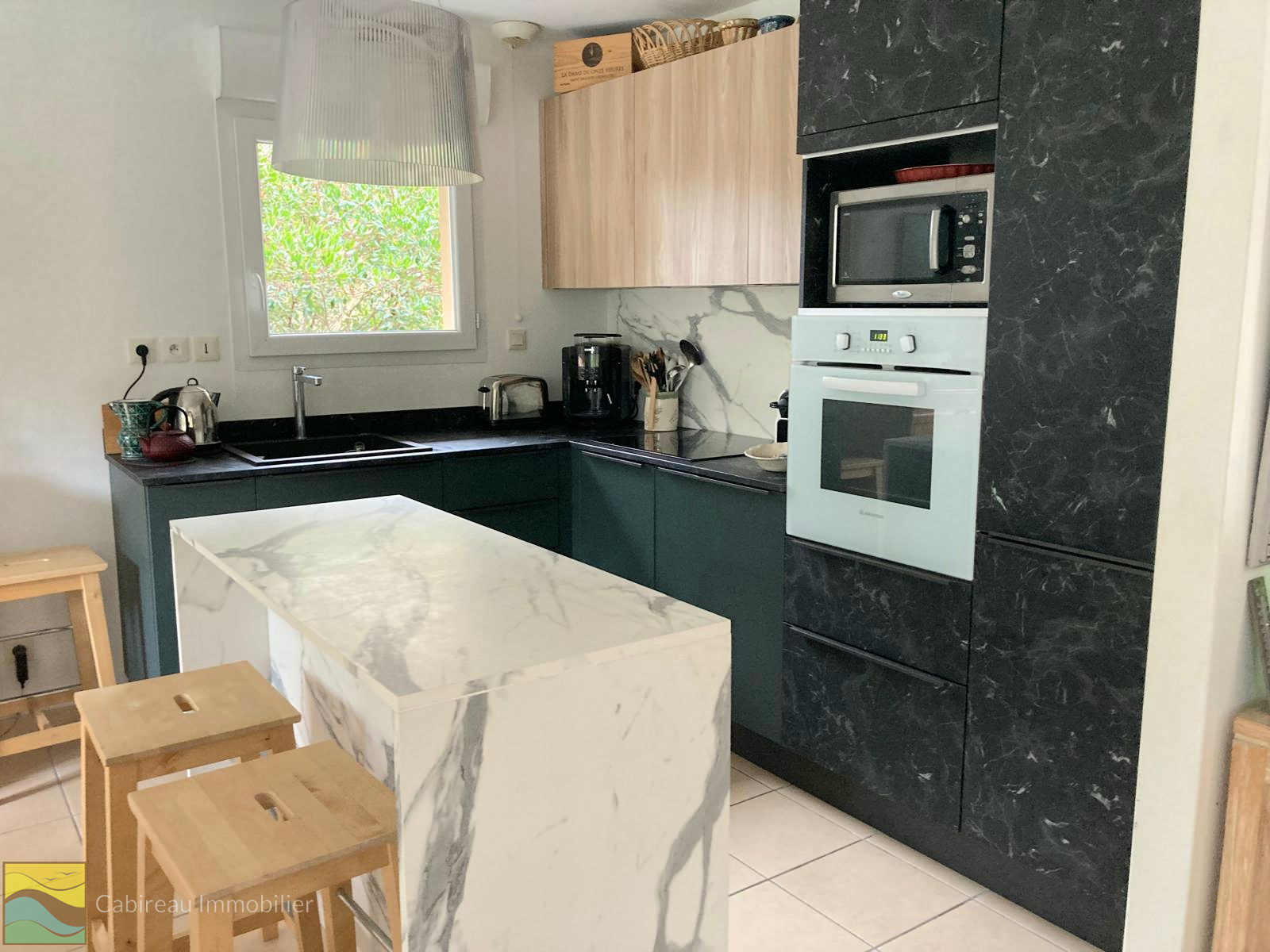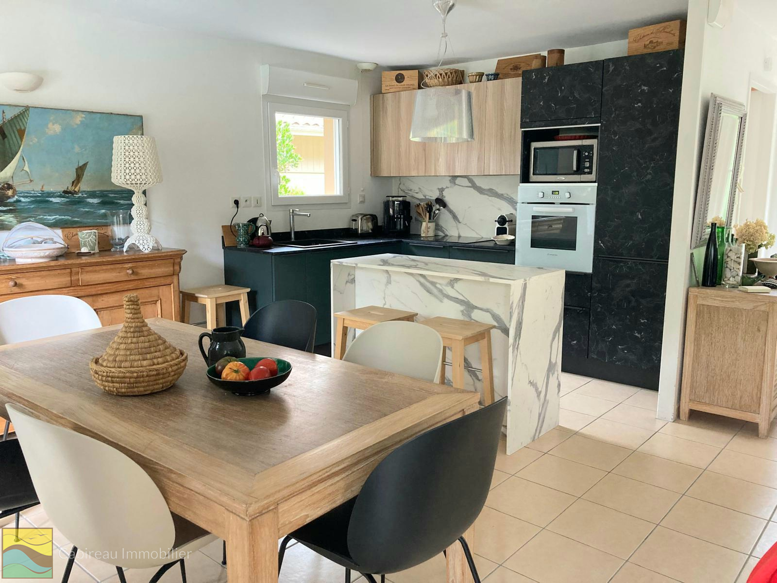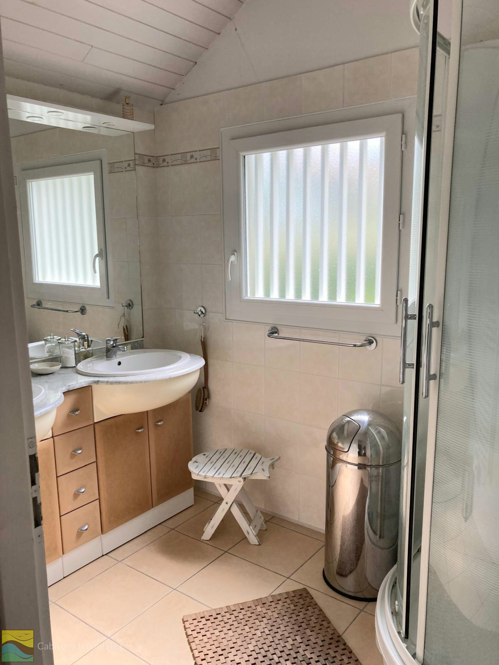 À l’étage, deux lumineuses chambres avec balcon, salle d’eau, dressing et WC complètent l’ensemble. La maison dispose aussi d'un abri de jardin et de trois places de stationnement.