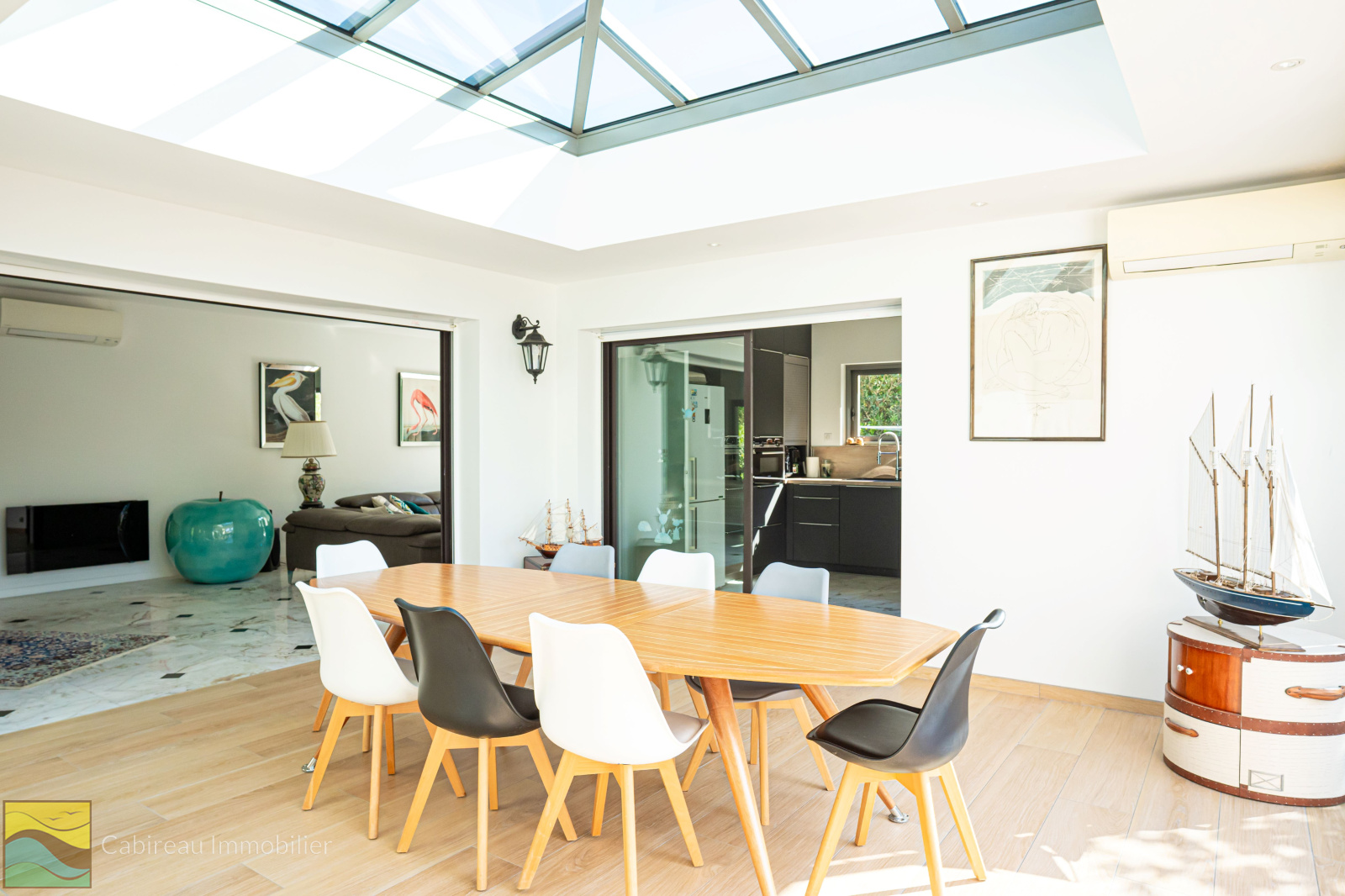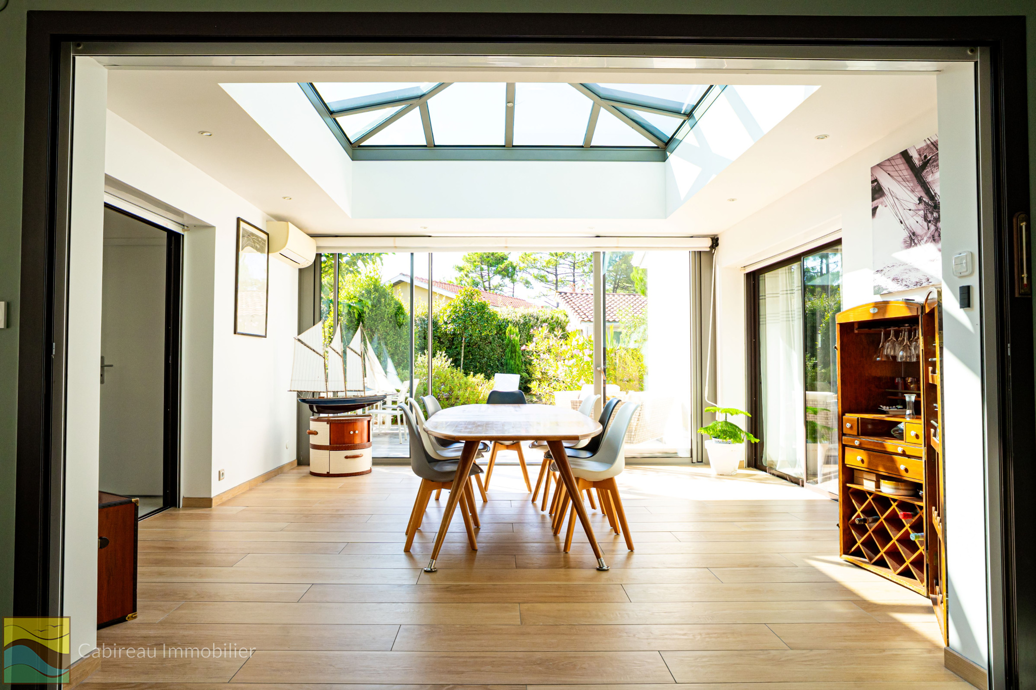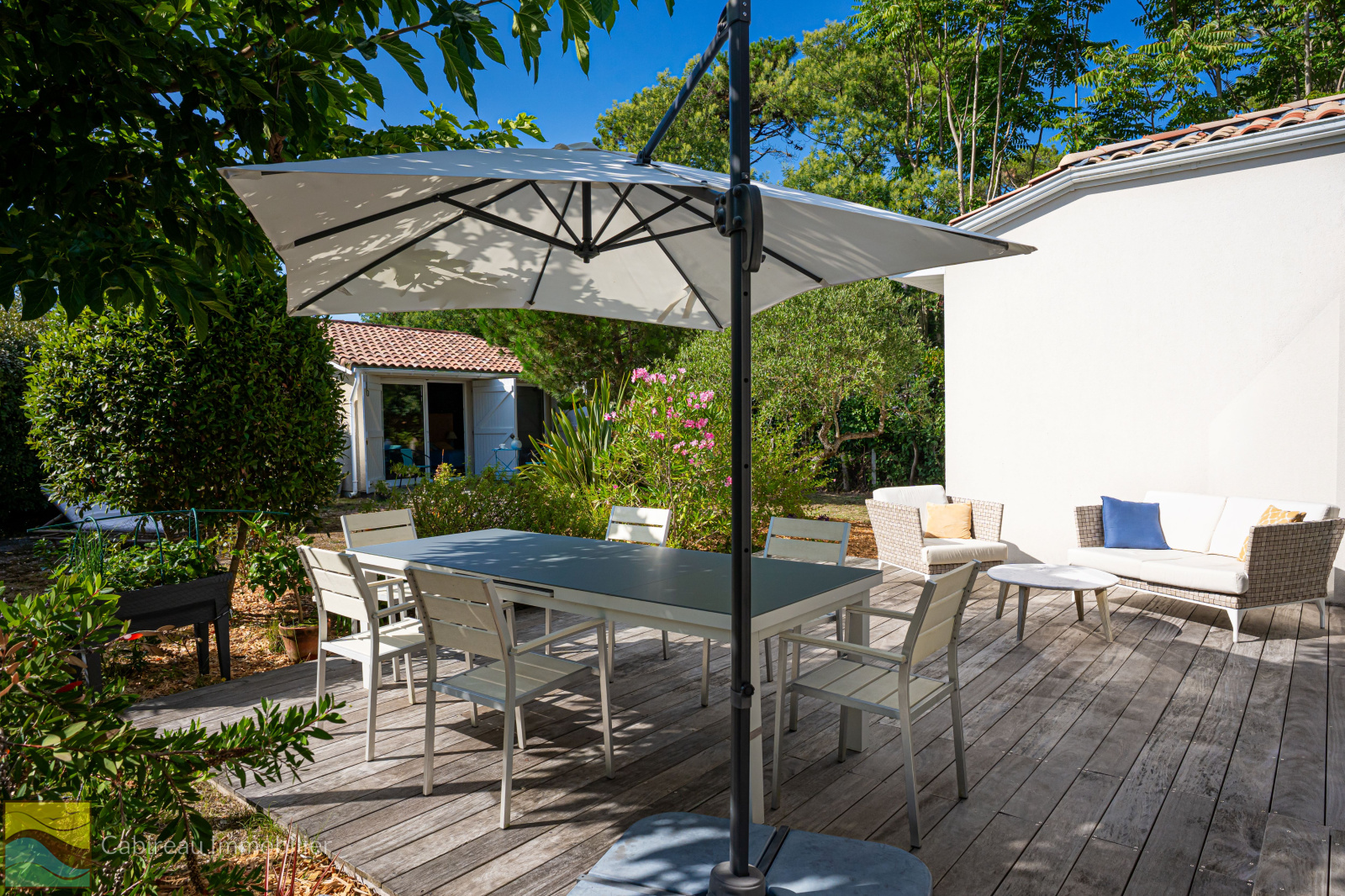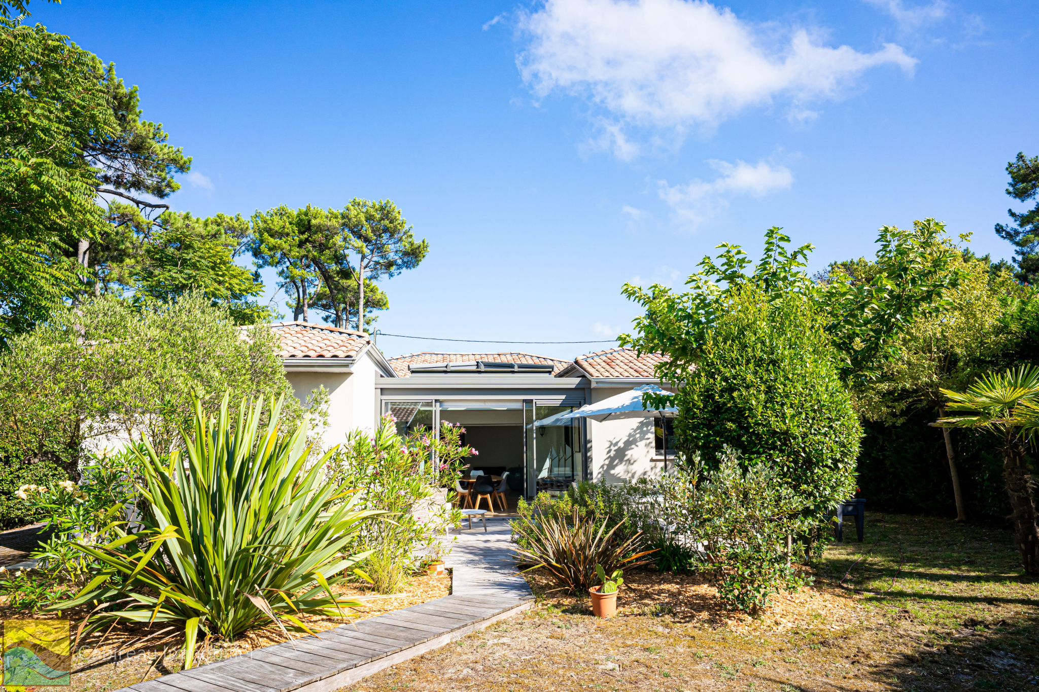 Lacanau ocean (33680)Elégante maison de 180 m² sur une parcelle ombragé, paysagé et cloturée de 839 m² à l'abri des regards alliant rafinnement et confort. Idéalement située au quartier sud de la station. Le bien dispose d'un hall d'entrée, un vaste séjour lumineux de 52 m² avec cheminée, une belle véranda de 20 m², une cuisine neuve de qualité avec cellier attenant.
