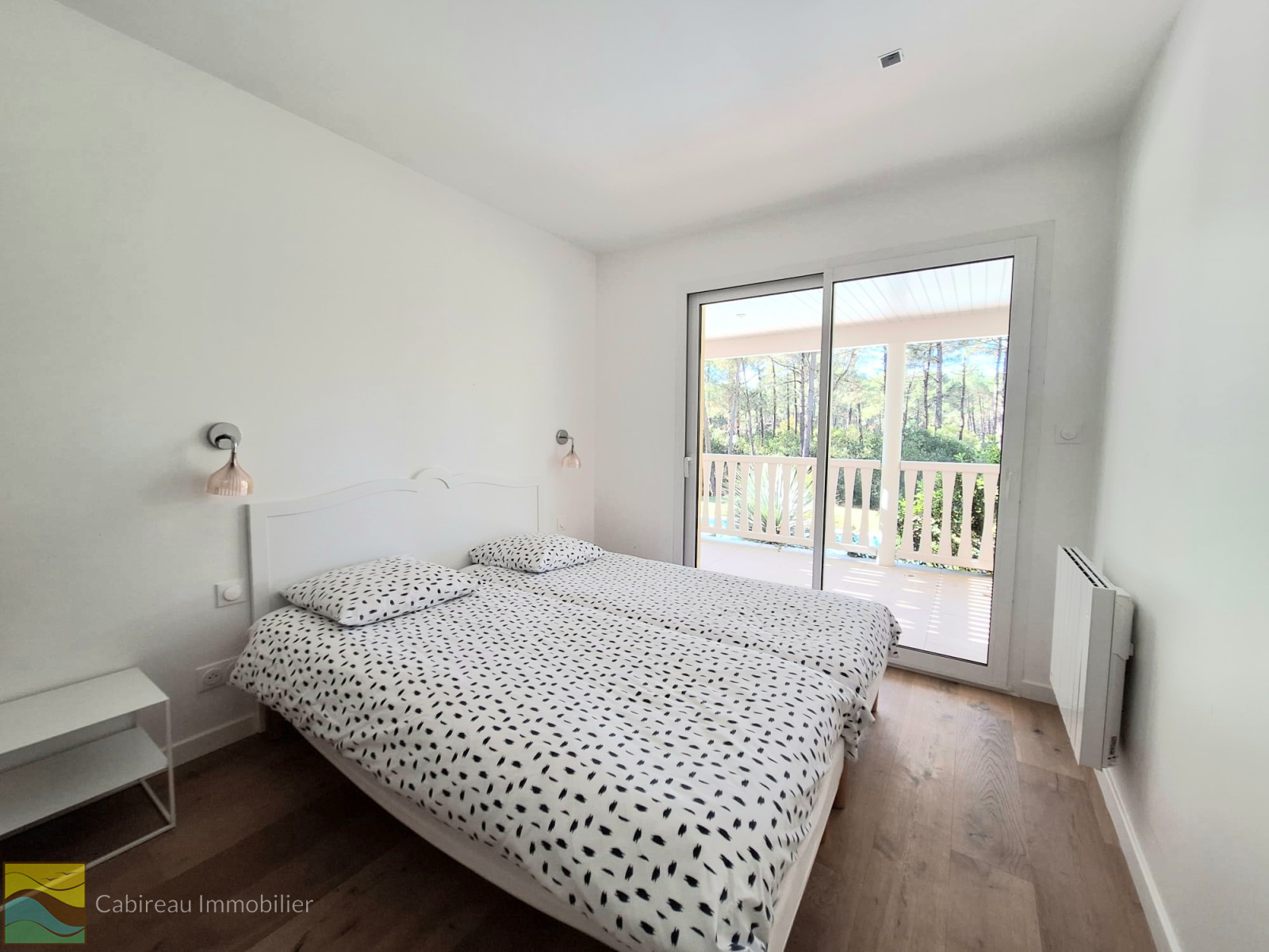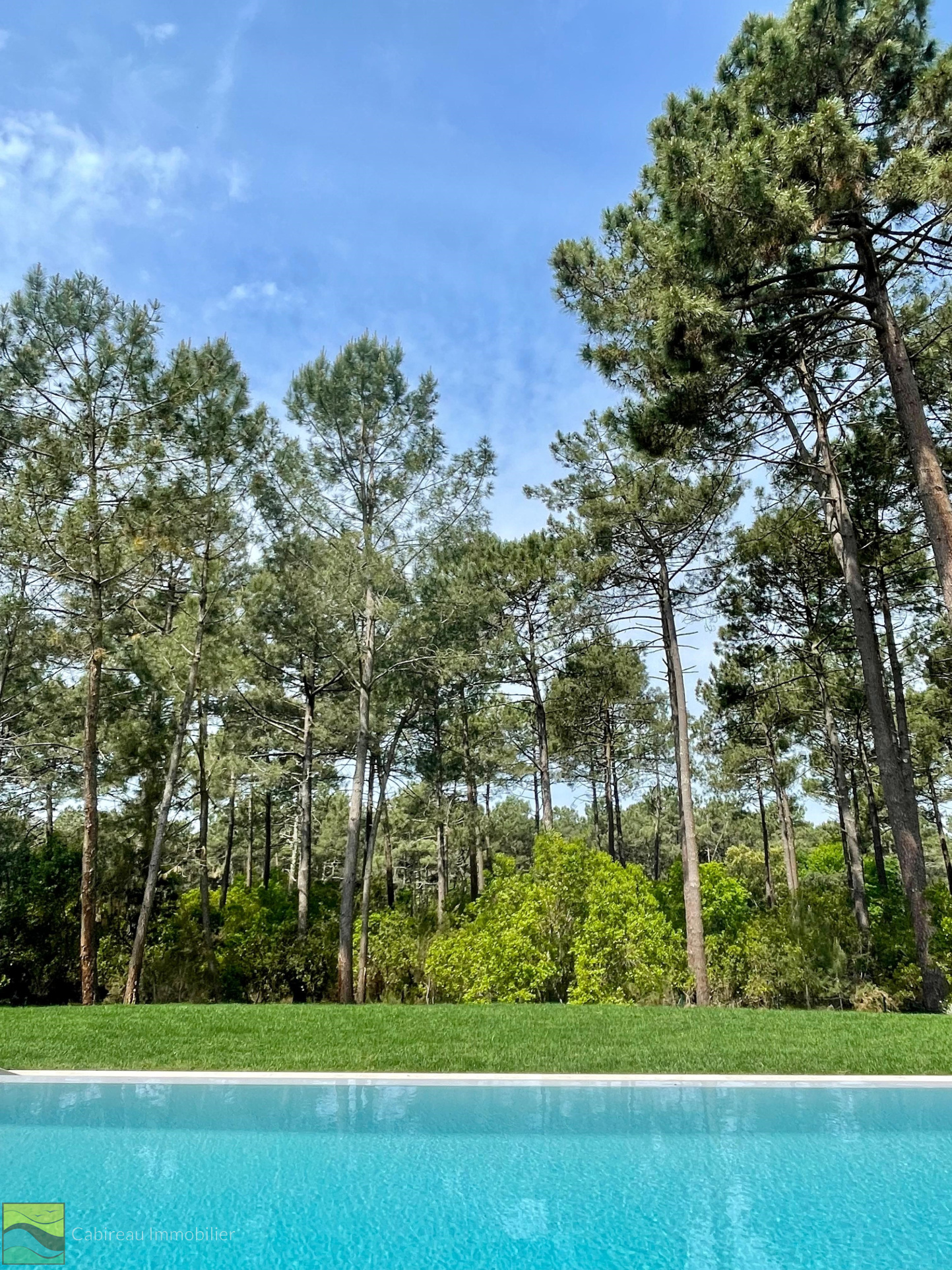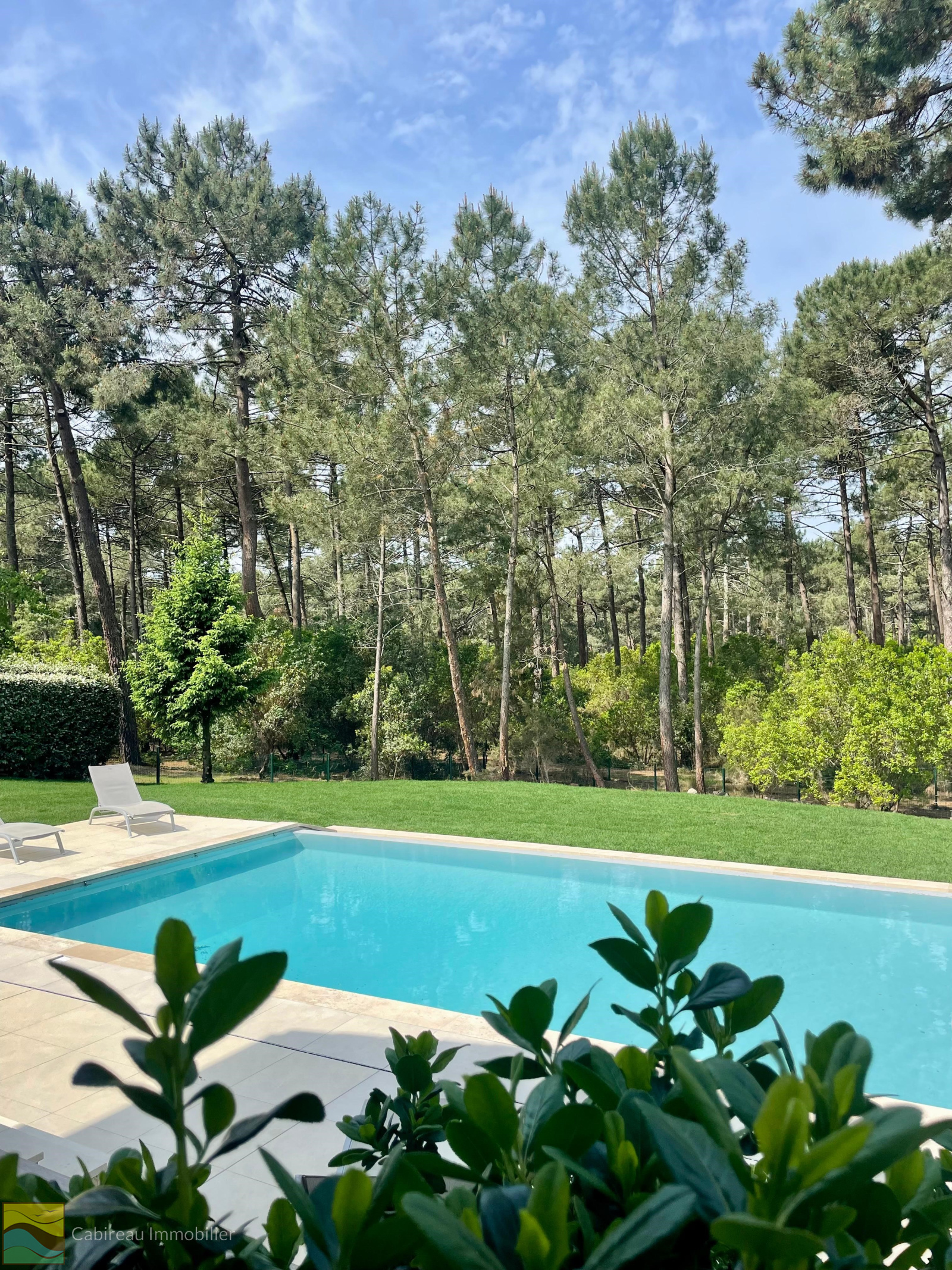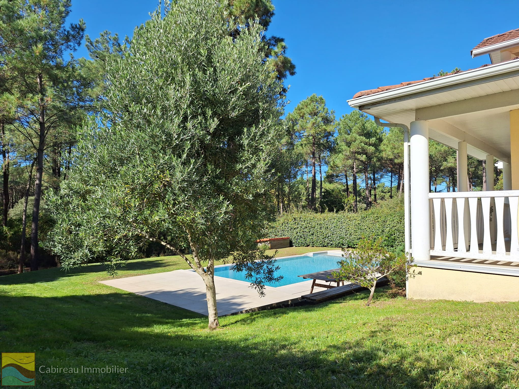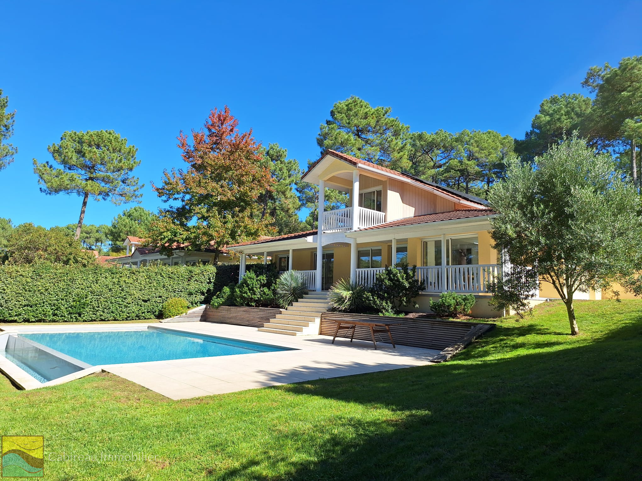Lacanau ocean (33680)En Exclusivitré. Située dans un environnement calme et prisé, cette maison contemporaine de 5 chambres avec agencement optimisé d’une surface de 150 m², agrandie et rénovée en 2019, repose sur un magnifique terrain de 1 355 m² offrant une vue pinède en 1ère ligne du golf.