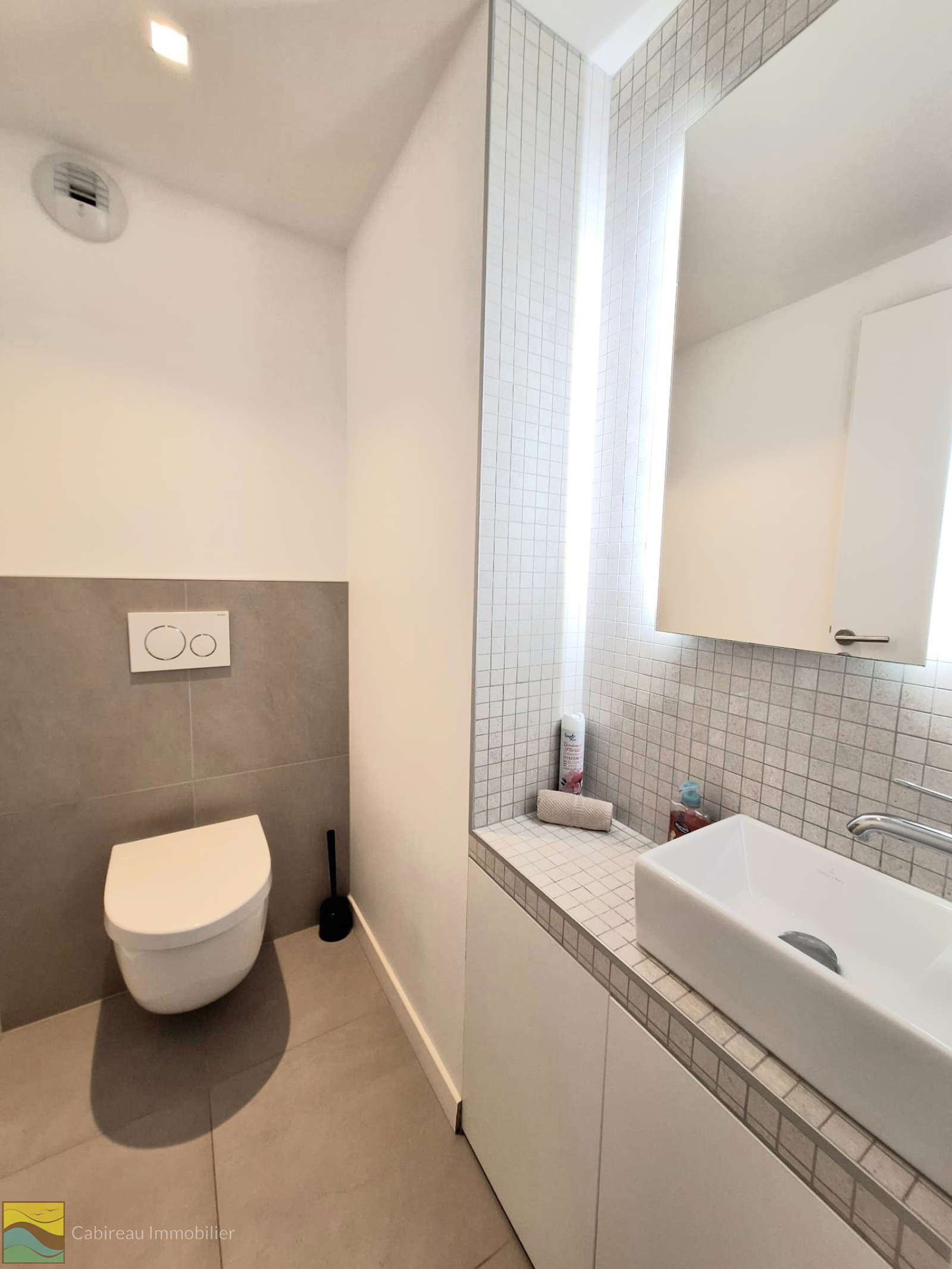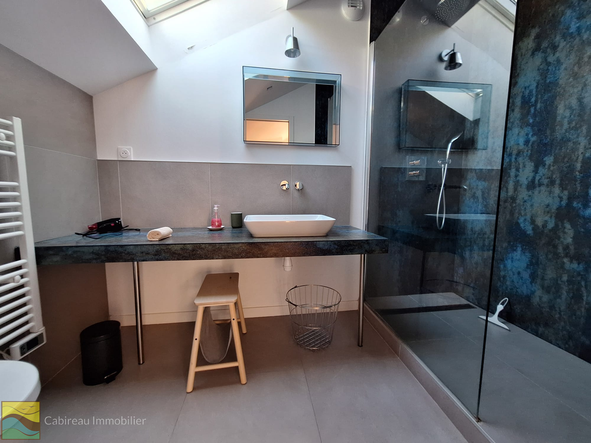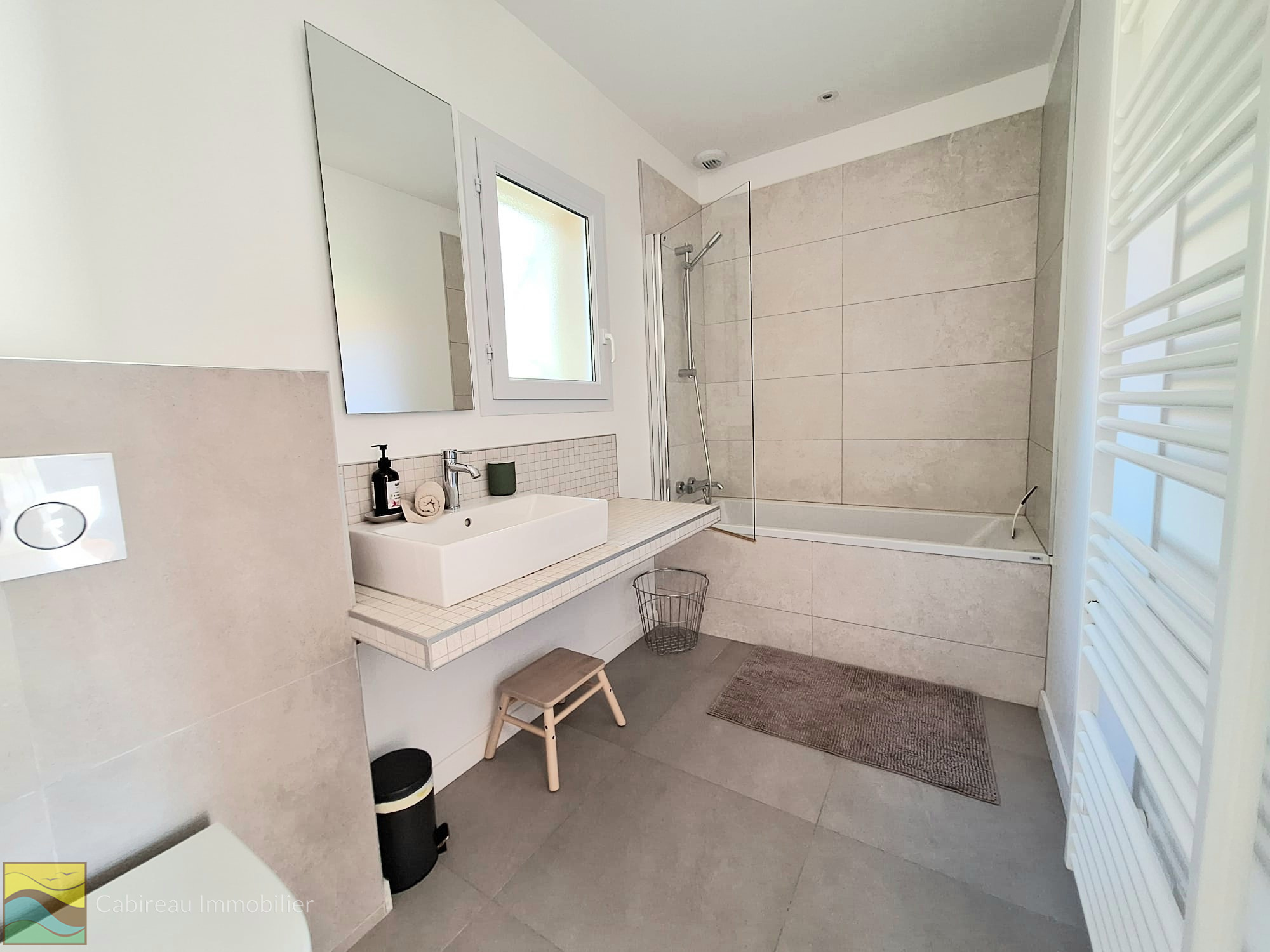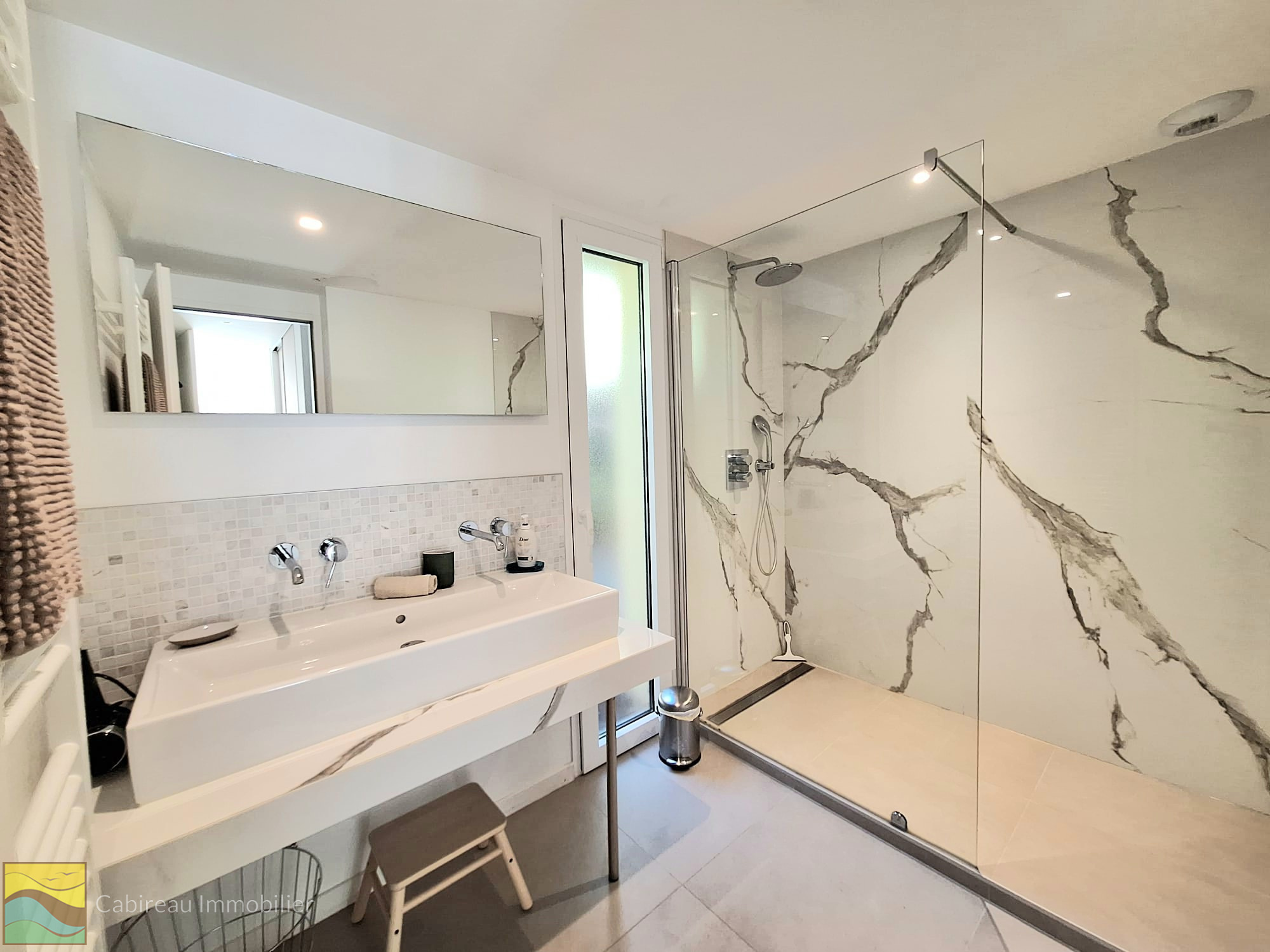 Au rez-de-chaussée, vous trouverez une vaste pièce de vie lumineuse, ouverte sur une terrasse couverte. Cet espace se compose d’un salon, d’un séjour et d’une cuisine américaine. Ce niveau comprend également une partie nuit disposant de trois chambres, une salle d’eau (douche à l'italienne) et wc indépendant.