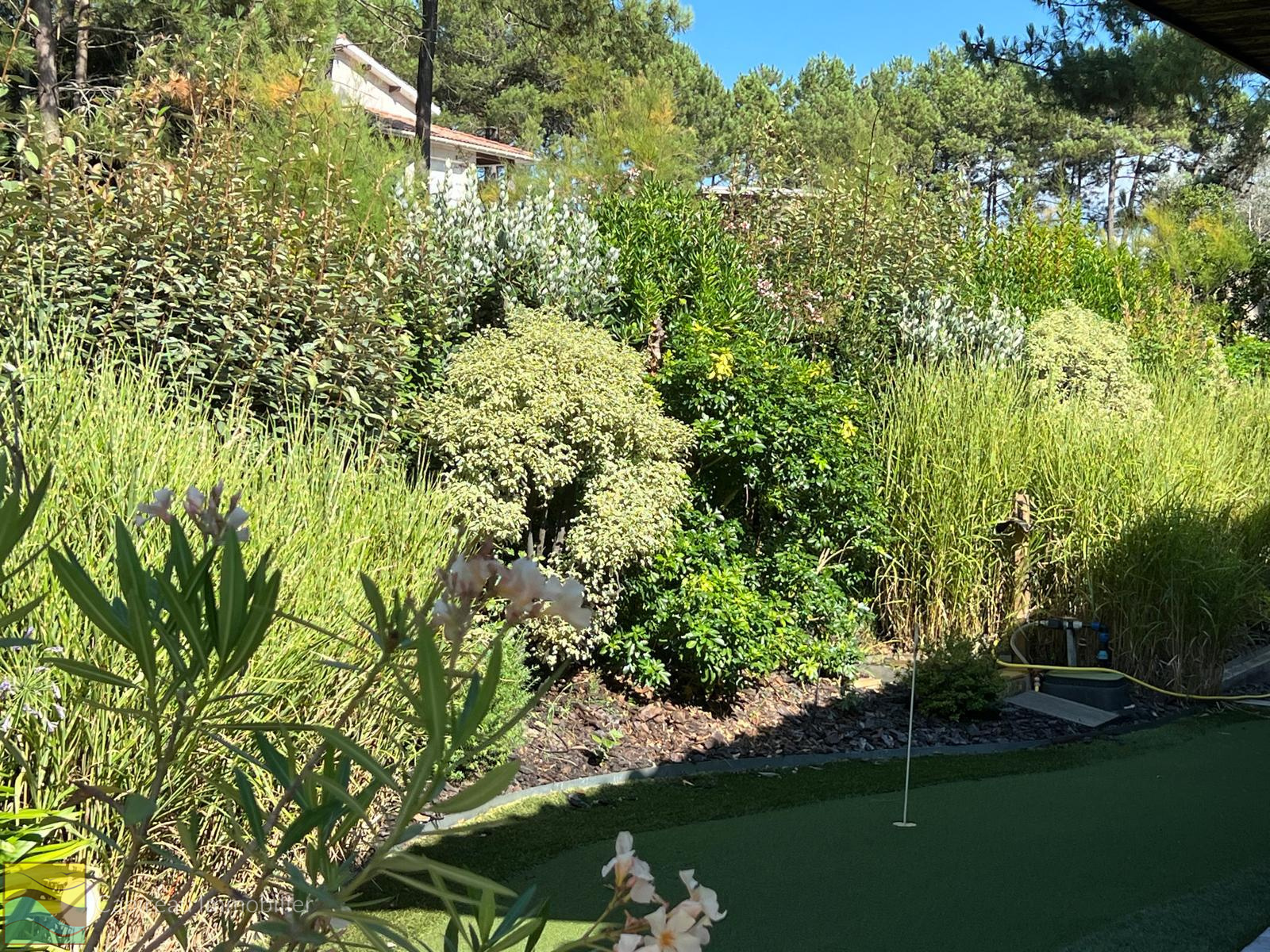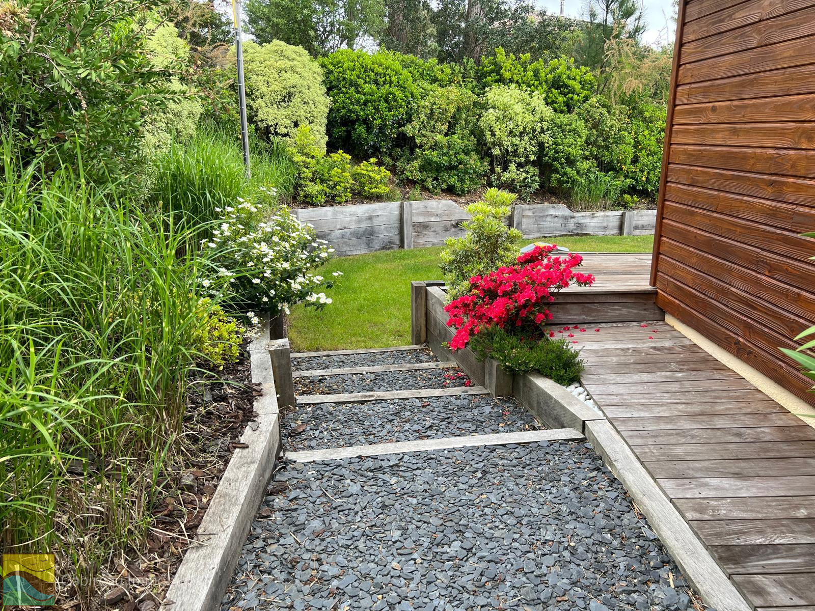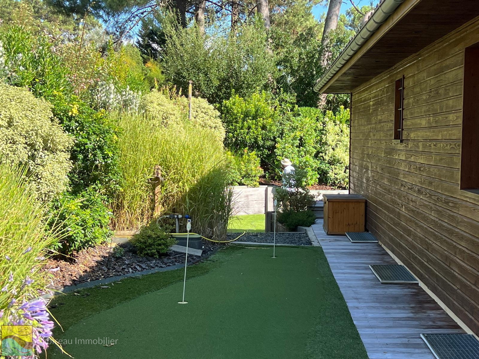 La maison dispose d’un jardin soigneusement paysagé à l’abri des regards, accueillant diverses terrasses en bois, un jacuzzi 4 places et une piscine chauffée au sel (9x4) équipée d'un abri piscine .