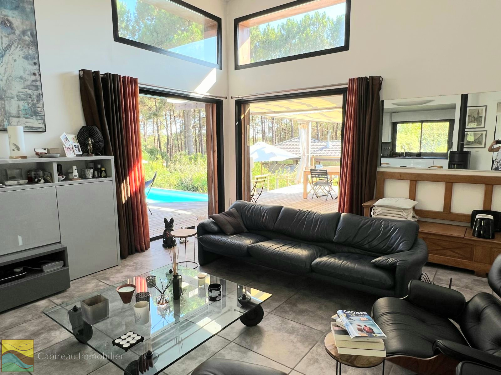 Le niveau principal propose une pièce de vie spacieuse et lumineuse comprenant salon (plafond cathédrale), cuisine américaine haut de gamme ouvrant sur une grande terrasse en bois exotique, une suite parentale avec salle d’eau/WC , dressing, bureau ou petite chambre. La seconde partie nuit dispose de deux chambres, salle d’eau et un WC indépendant.