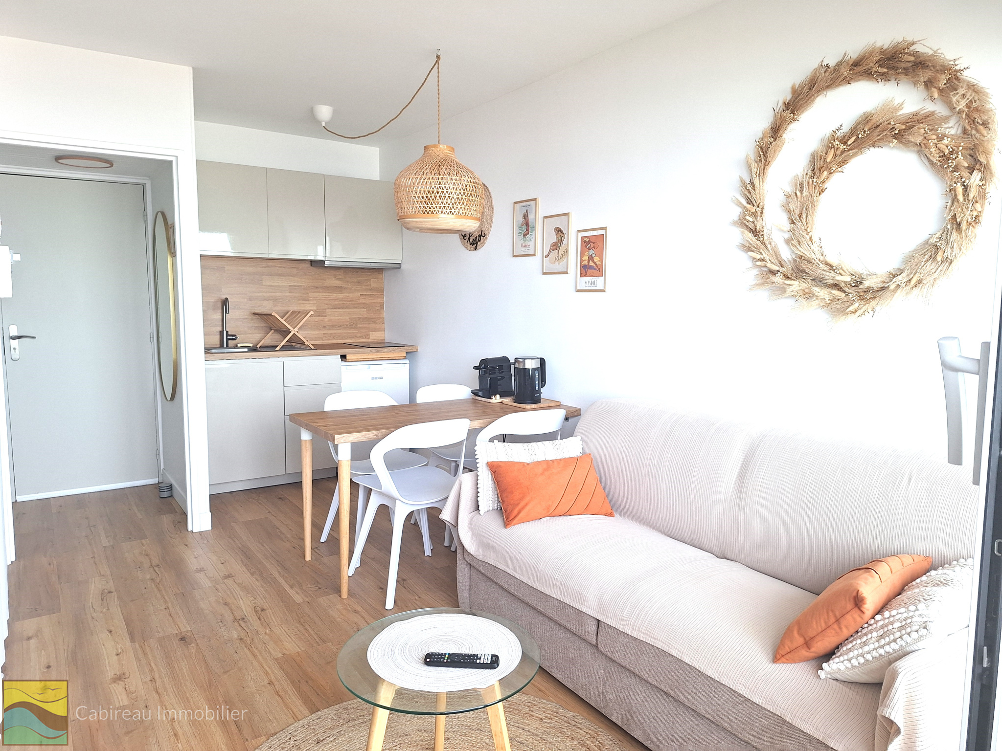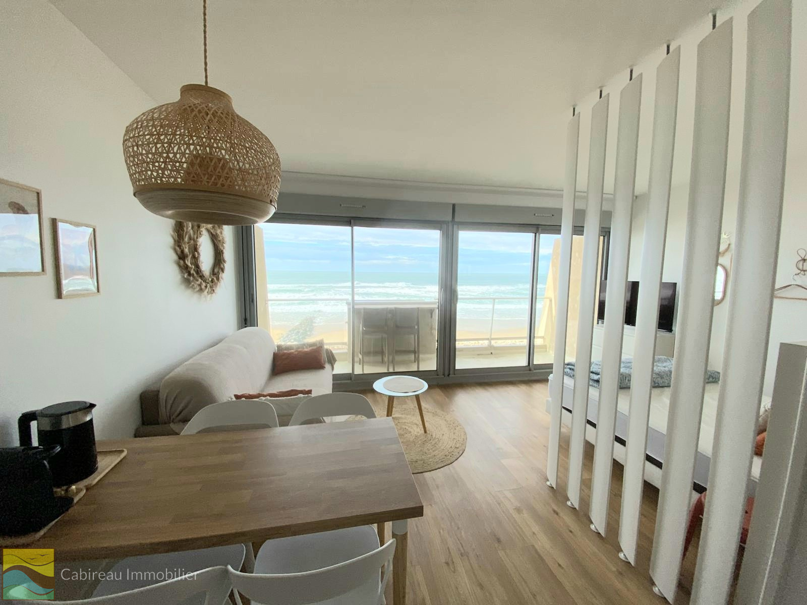 Lacanau ocean (33680)Une magnifique vue océan depuis ce studio de 23.80 m2 (Carrez) situé au 3ème & dernier étage d'une résidence sécurisée, le bien a été rénové en 2024, équipé d'une pièce de vie avec kitchenette ouvrant par grand baie vitrée sur un balcon de 6 m² face à la mer, d'une salle d'eau refaite avec WC.