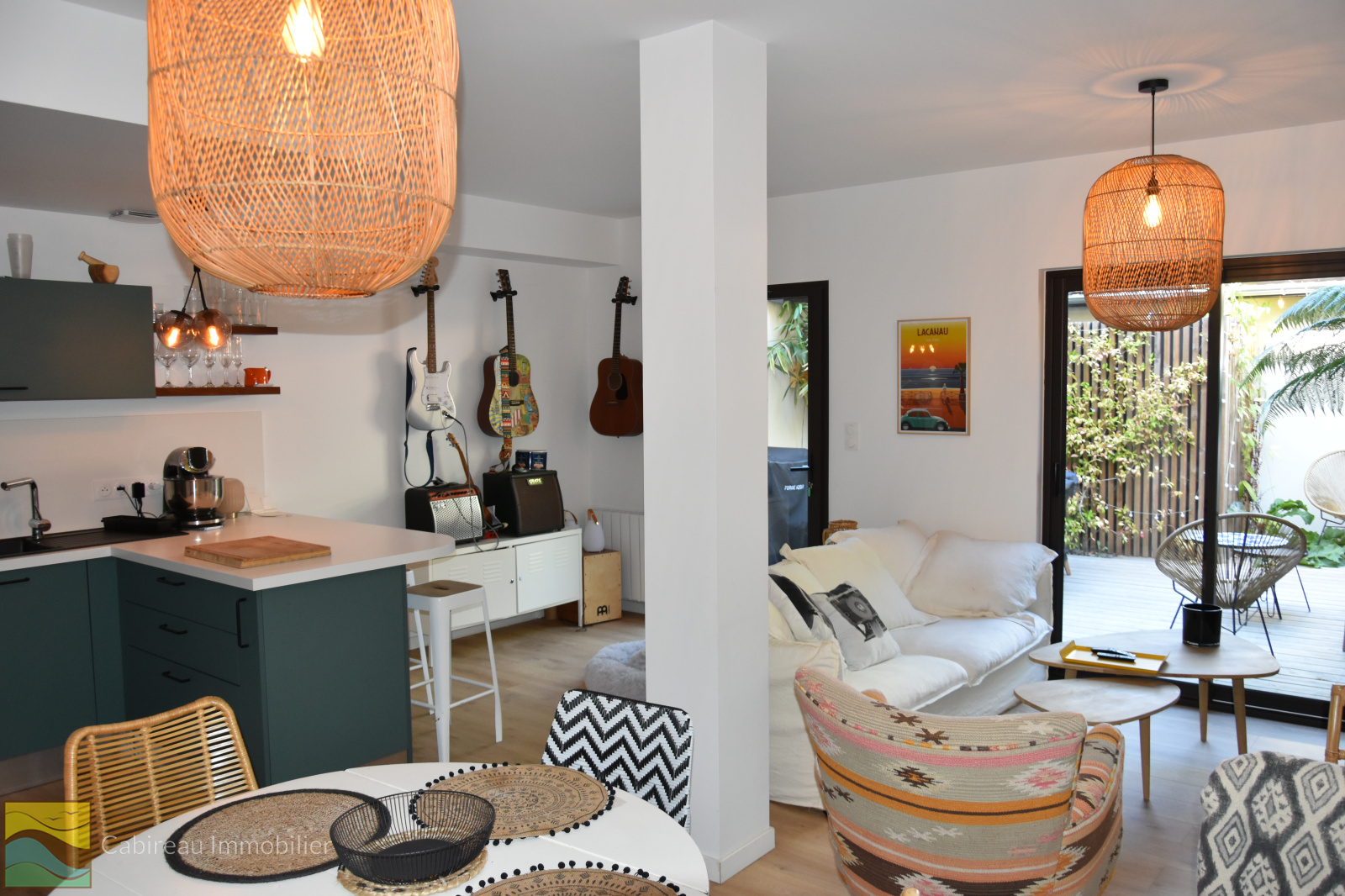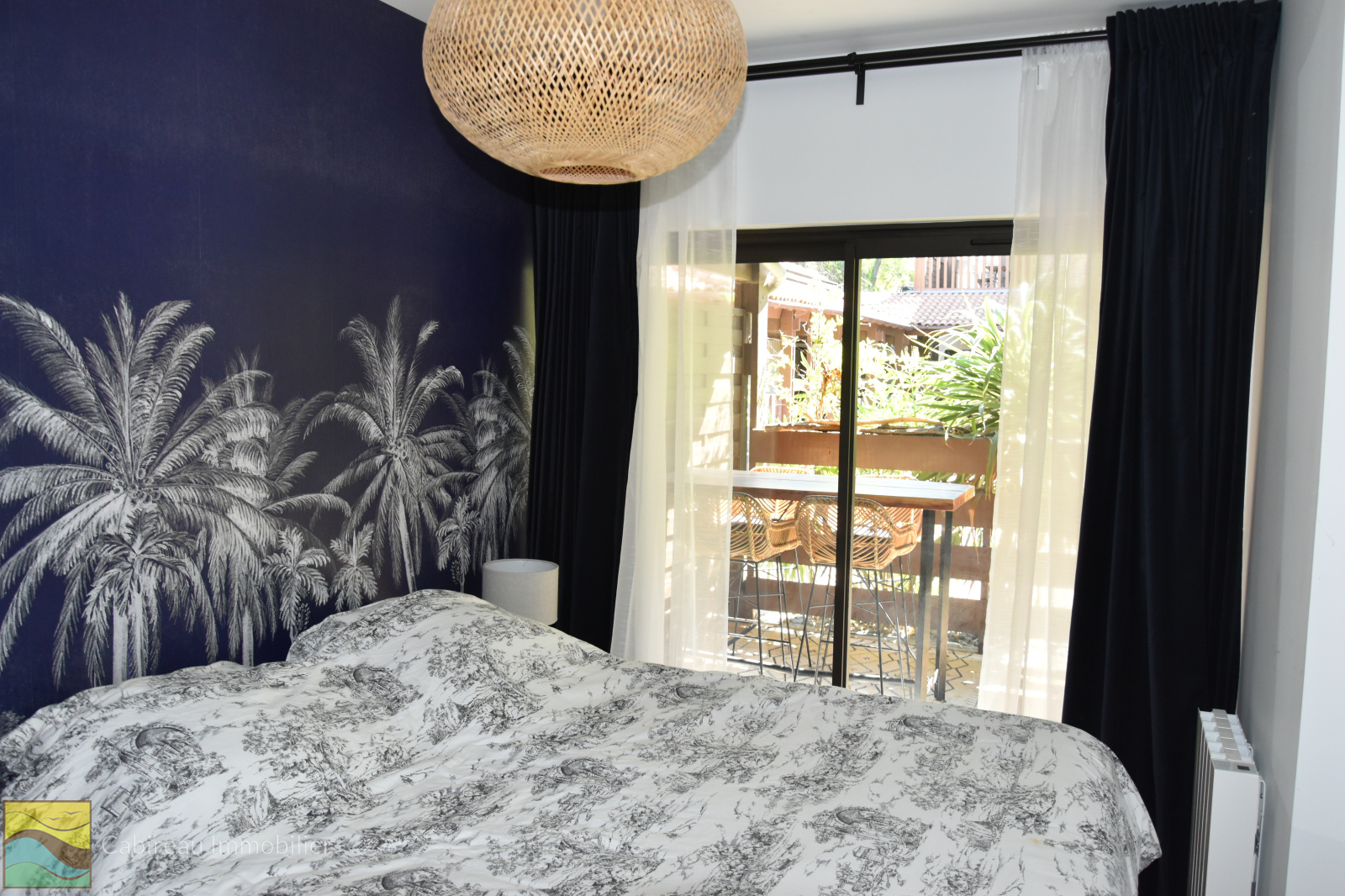 Coup de coeur pour ce superbe appartement amenagé avec harmonie. Il a été rénové en 2020 et se situe au RDC dans une résidence secteur sud à 2 km du centre et des plages, accès direct piste cyclable et à 2 pas de la plaine des sports.