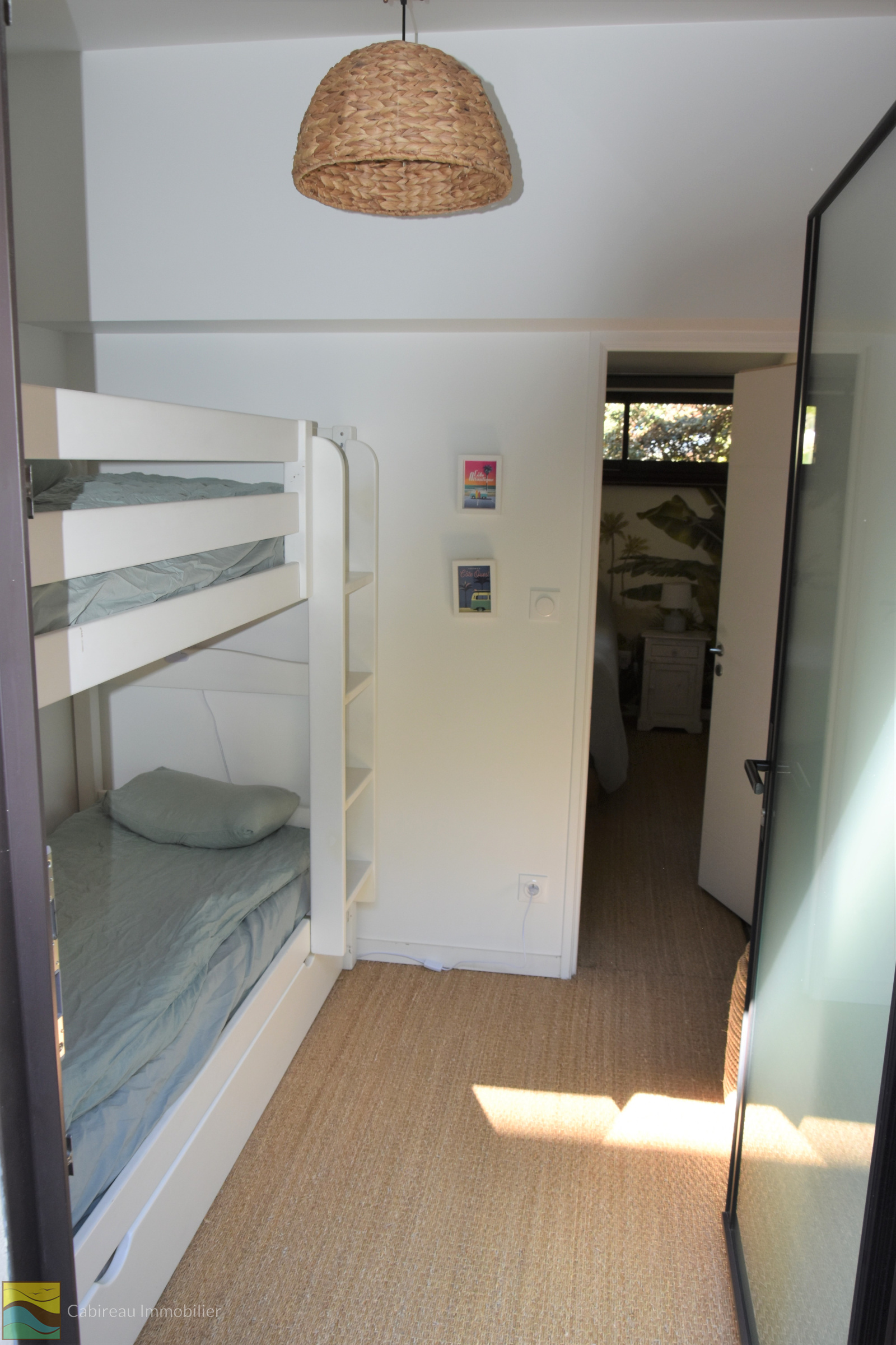Le bien offre une surface habitable de 75 m² et se compose : d'un séjour-cuisine équipée, 2 chambres, 1 chambre cabine ou bureau, salle d'eau, salle de bains, 2 WCS. Terrasse/ patio en bois de 31 m², terrasse sud de 14 m², douche extérieure et 2 places de stationnement.